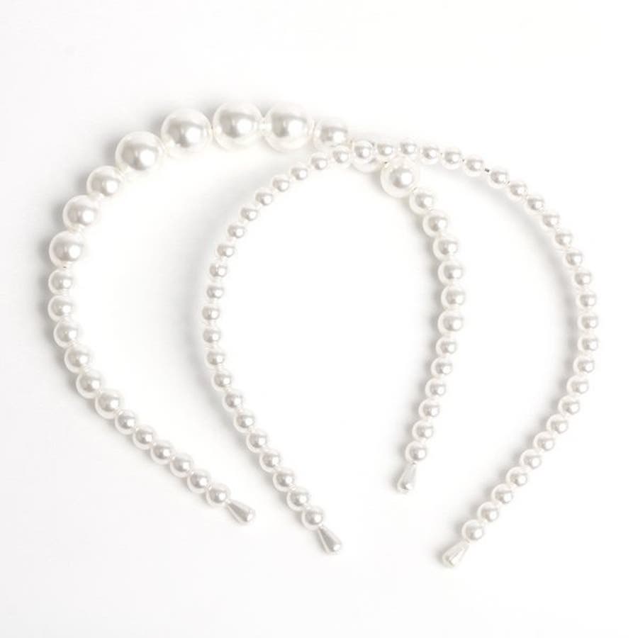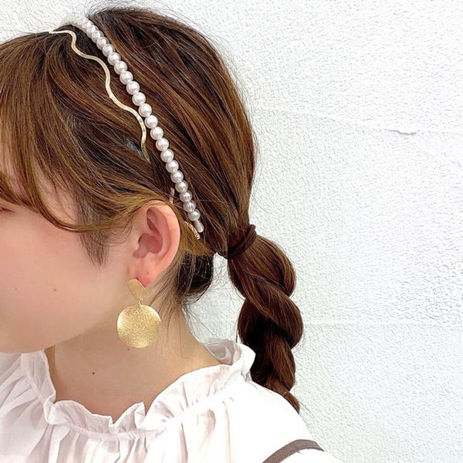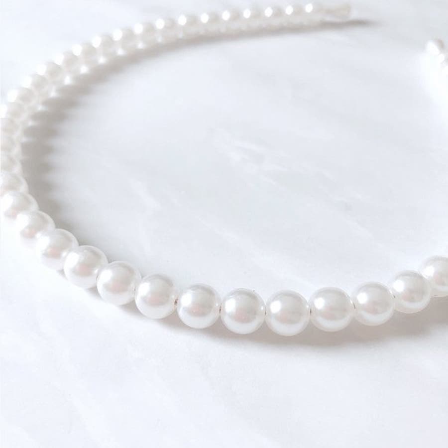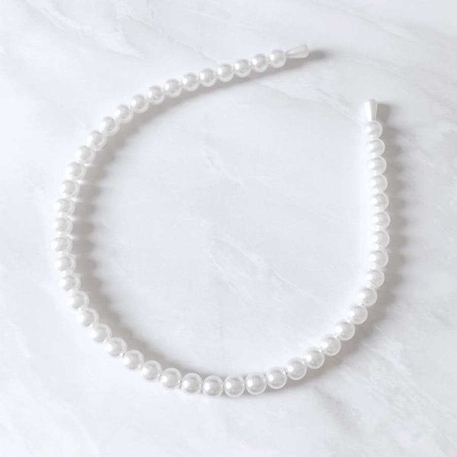 小ぶりのパールが並んだ、上品なパールカチューシャ。