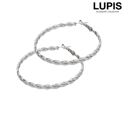 ロープ編みのようなツイストデザインのフープピアス。