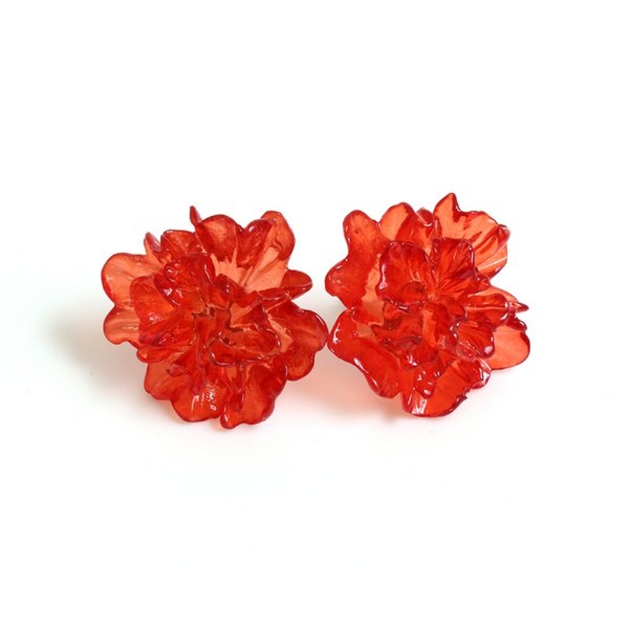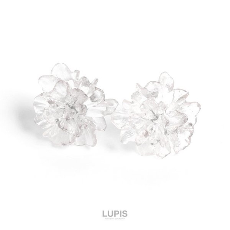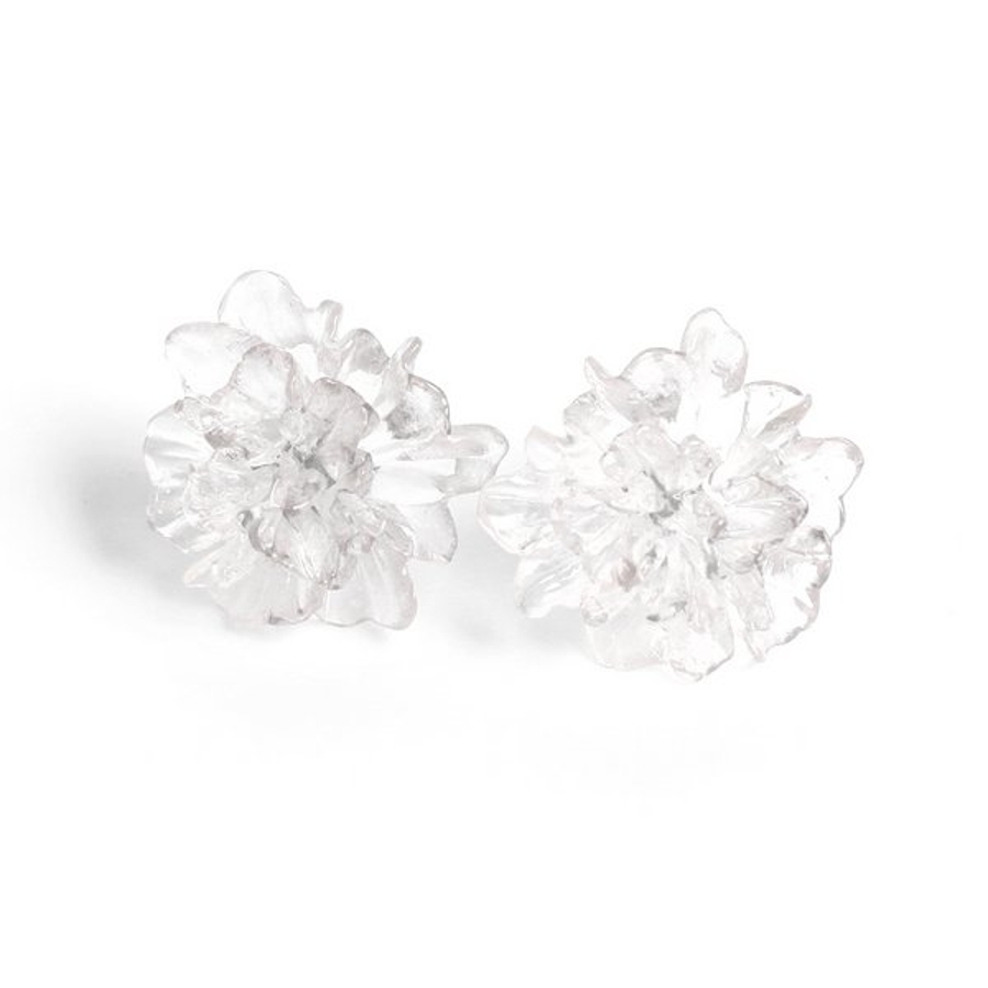 甘すぎない大人かわいい、立体的なクリアフラワーピアス。