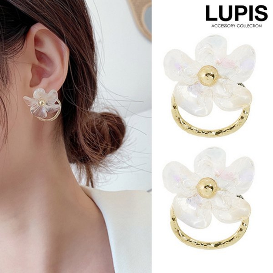クリアフラワー×オーバルバックキャッチピアス 【アクセサリー アクセ