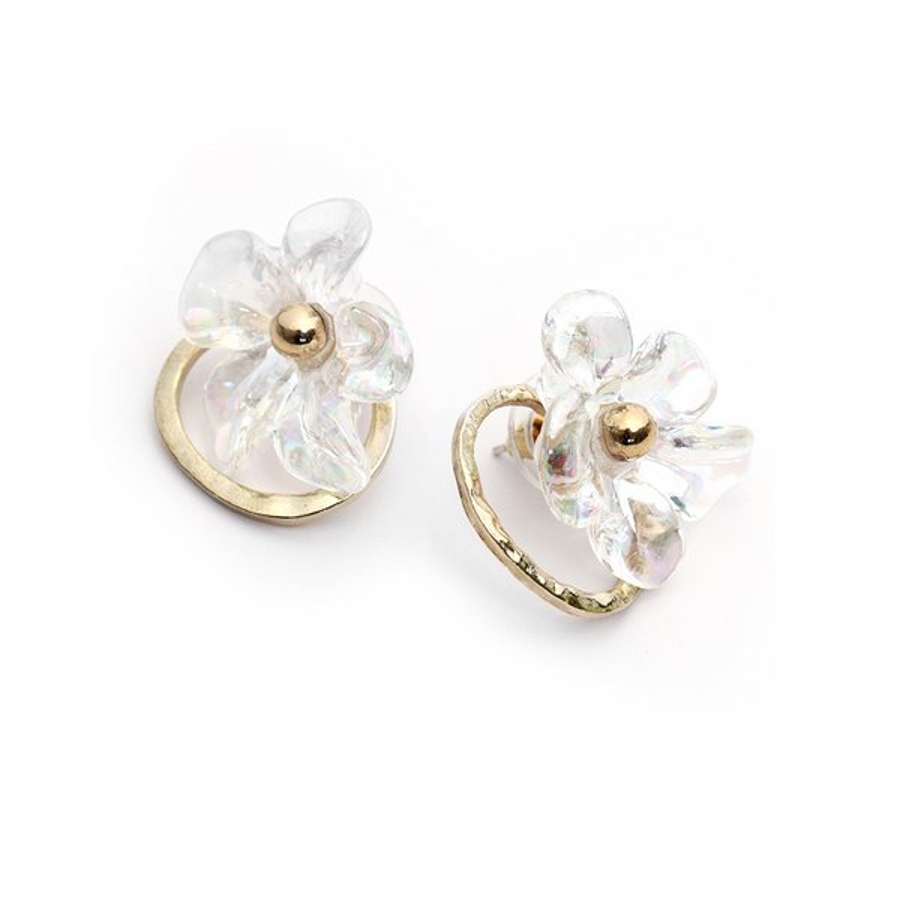 クリアフラワーが上品でかわいらしいバックキャッチピアス。