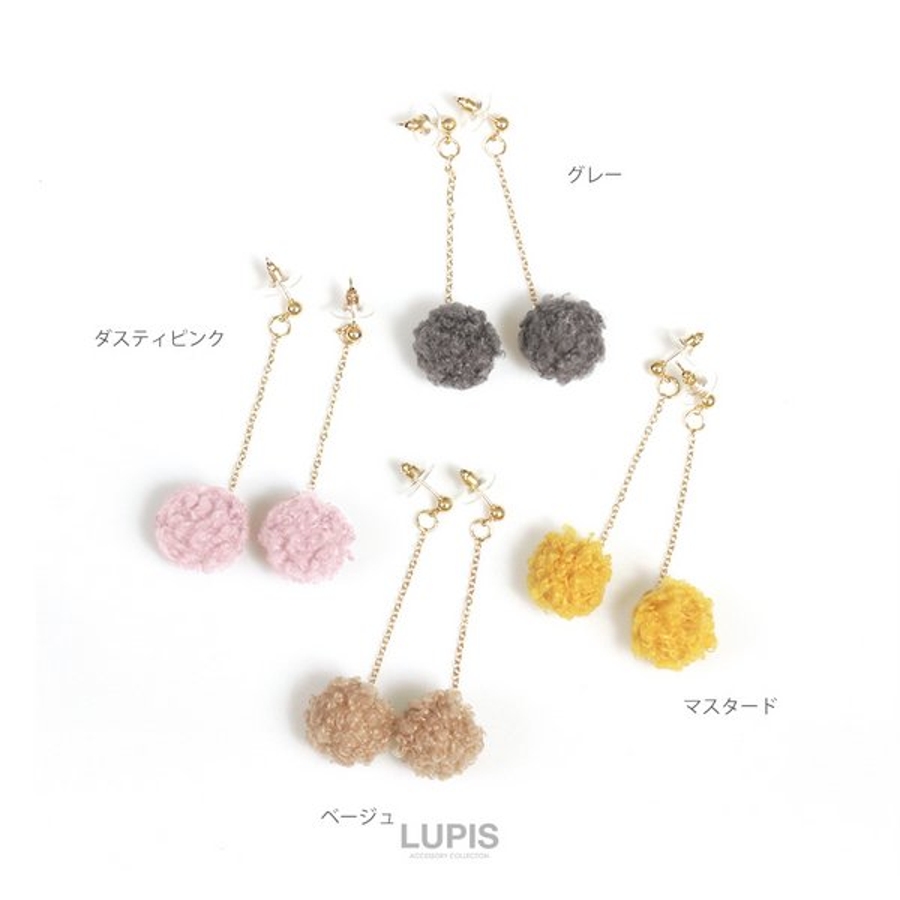 まるでプードルのようなくるくる毛並みのポンポンが可愛らしいピアス。