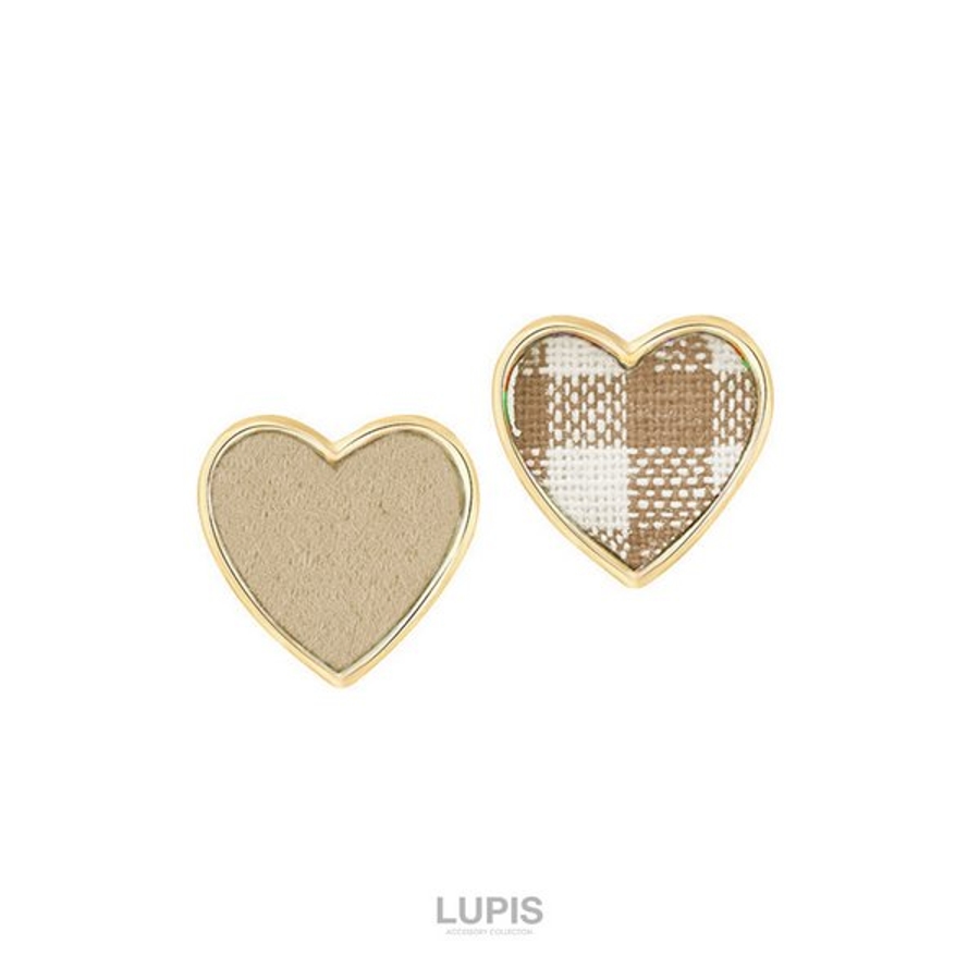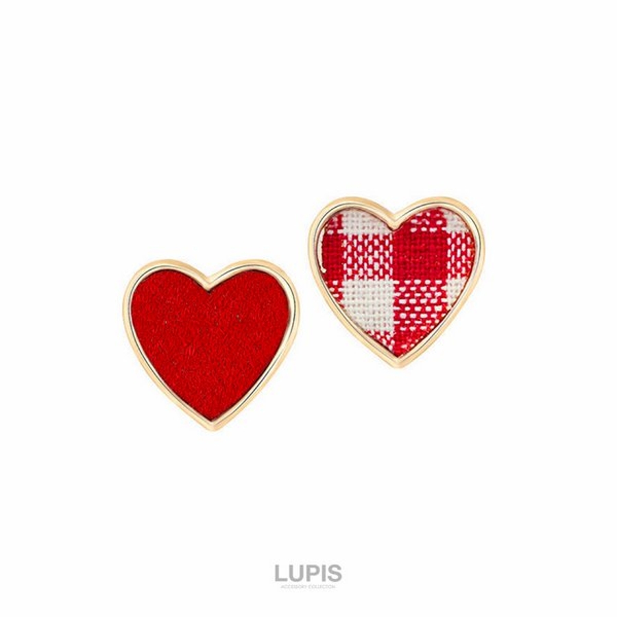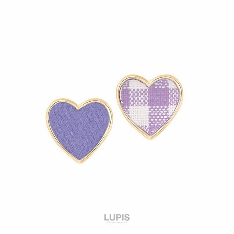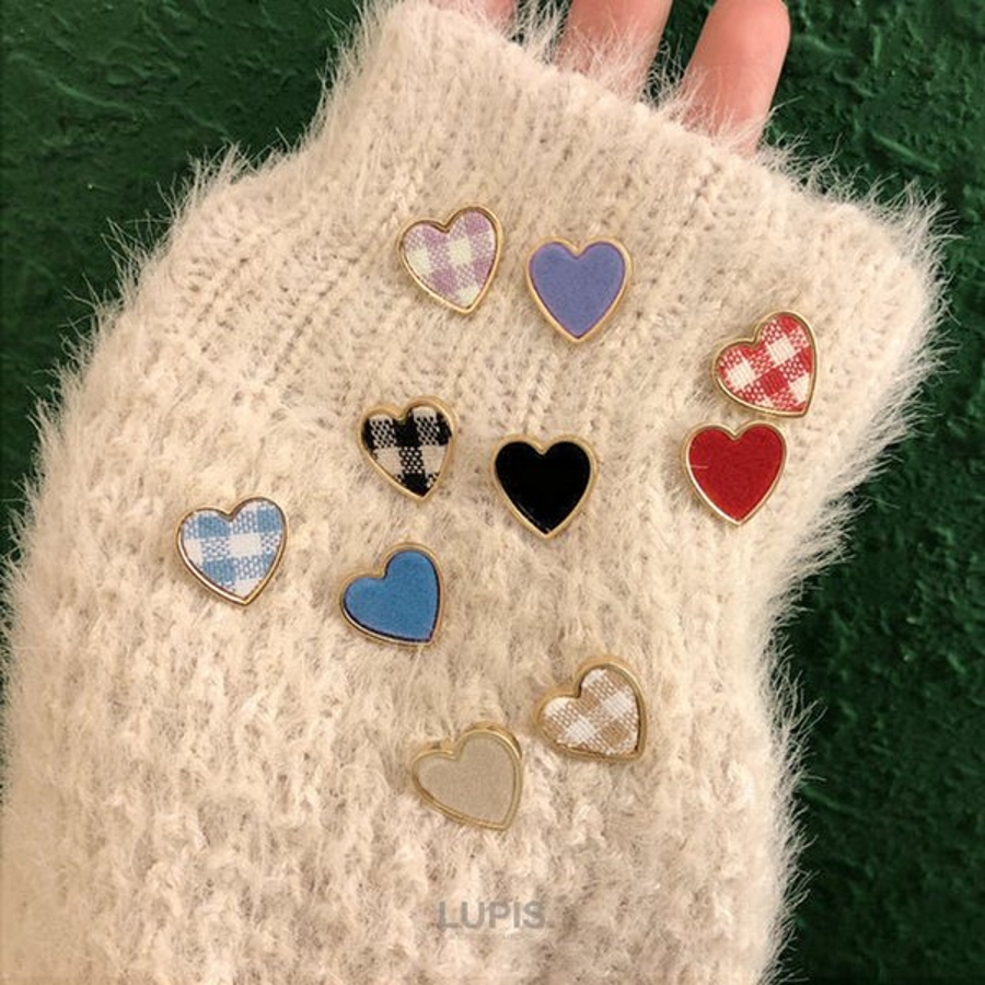 プチプラ イヤリング チェック柄 ハート レディース クリップ式 アシンメトリー シンプル かわいい ガーリー ベージュ ブラック レッド ブルー パープル 安い 春 夏 秋 冬 春夏 秋冬 ルピス LUPIS