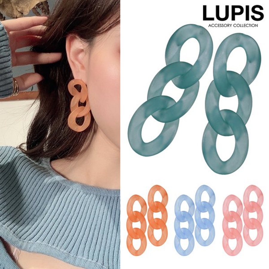 プチプラ シルバー925ポスト S925ポスト 大ぶり チェーン ボリューム 大ぶり マット 透け感 シアー アクリル コーラル ピンク オレンジ ブルー グリーン ピアス レディース 安い 春 夏 秋 冬 春夏 秋冬 ルピス LUPIS