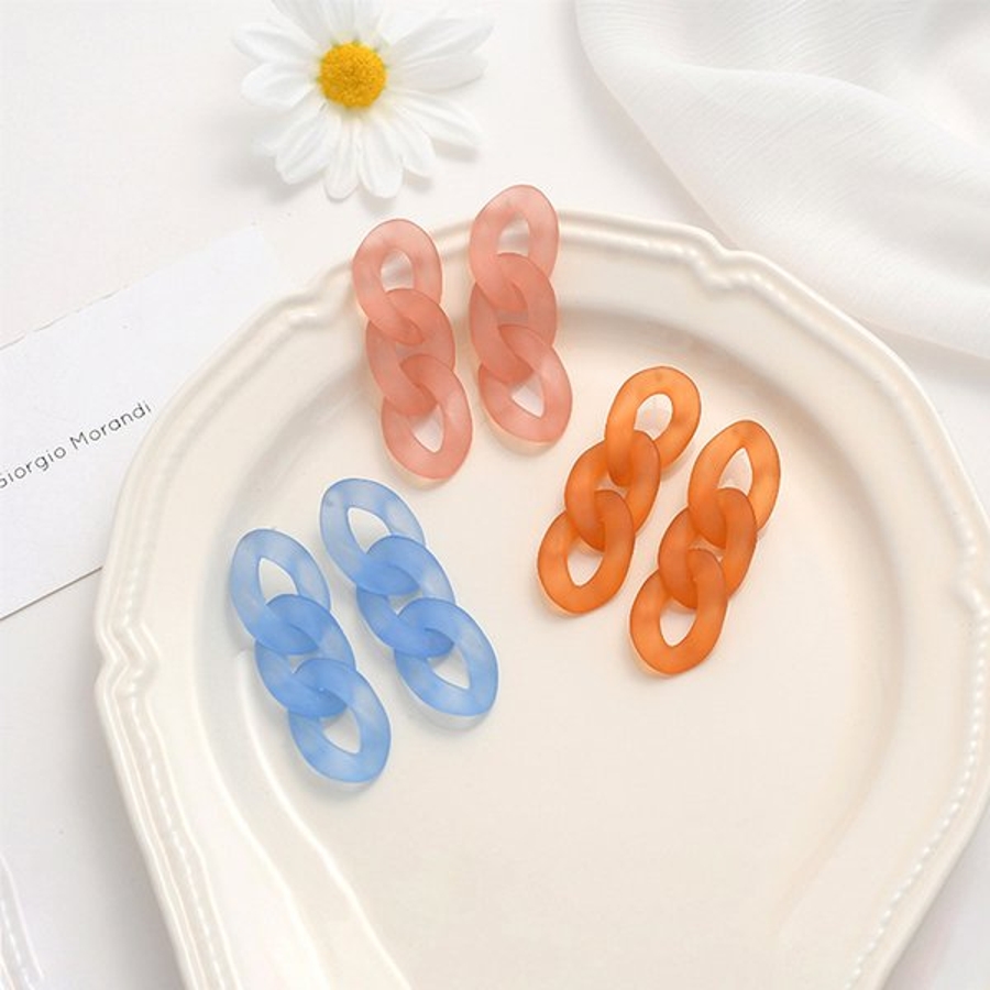 半透明のマットカラーがかわいいアクリルチェーンピアス。