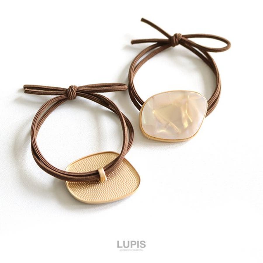 いびつな形がこなれ感を演出する、マーブルプレートヘアゴム。