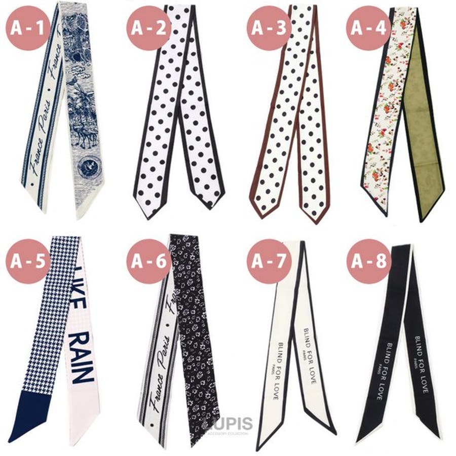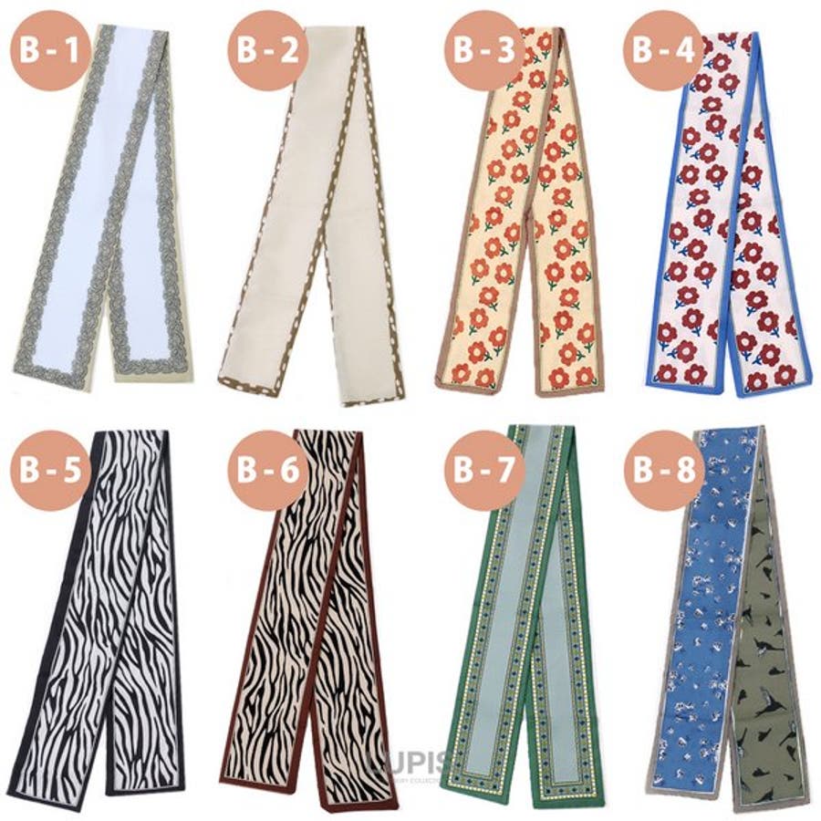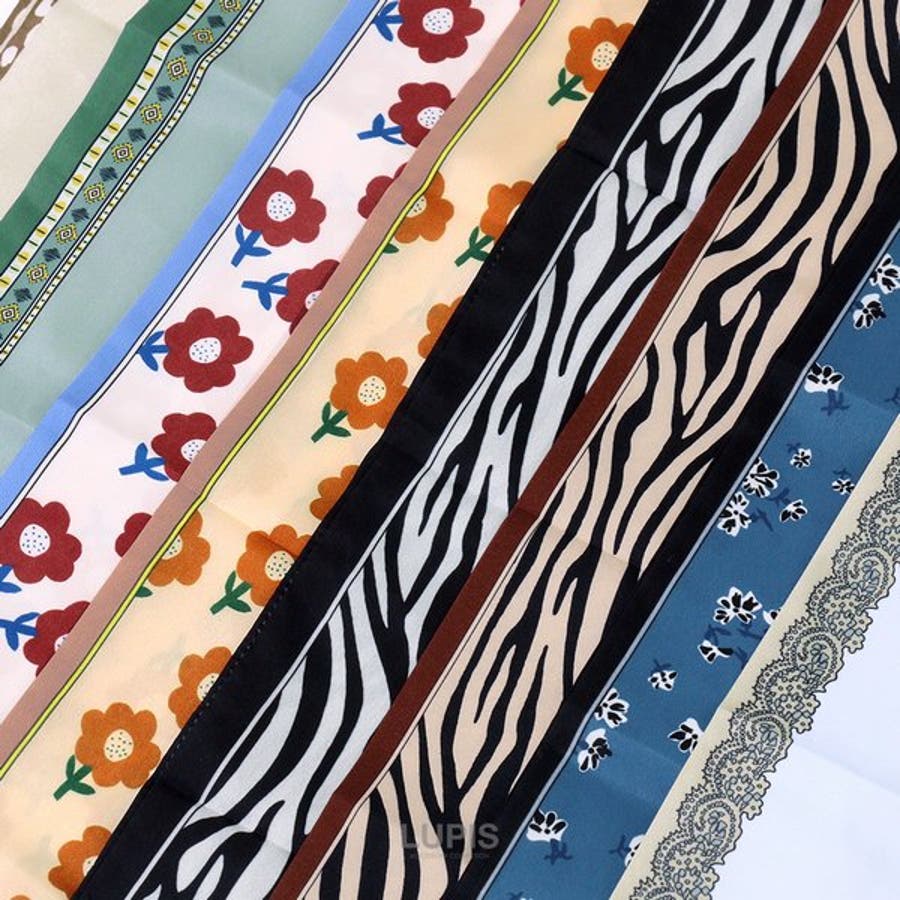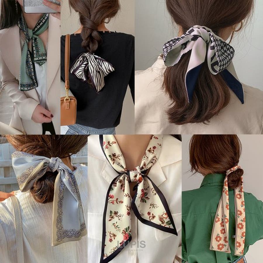 頭、首元、手首、腰、バッグ等、色んな用途で使える細長タイプのスカーフ。