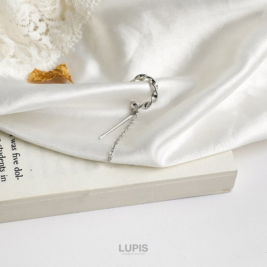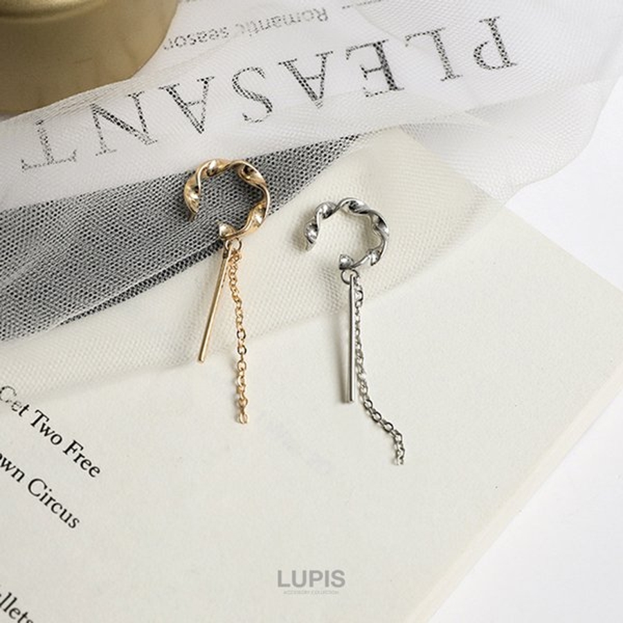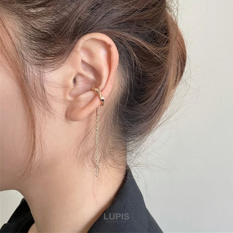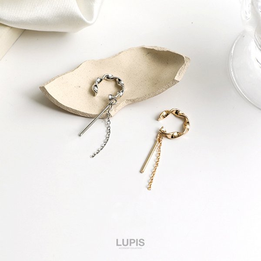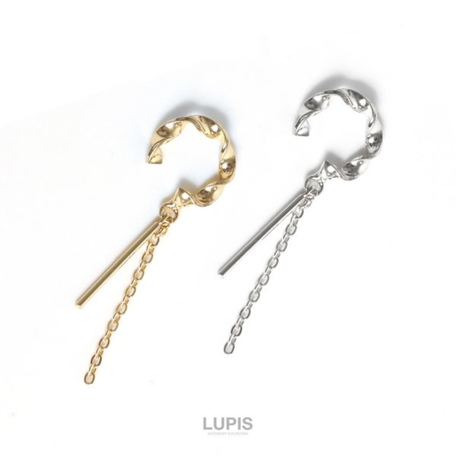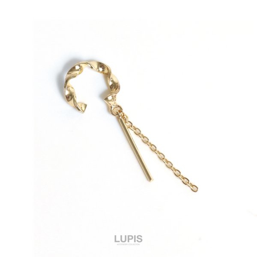 バーとチェーンが揺れる、ツイストデザインのイヤーカフ。