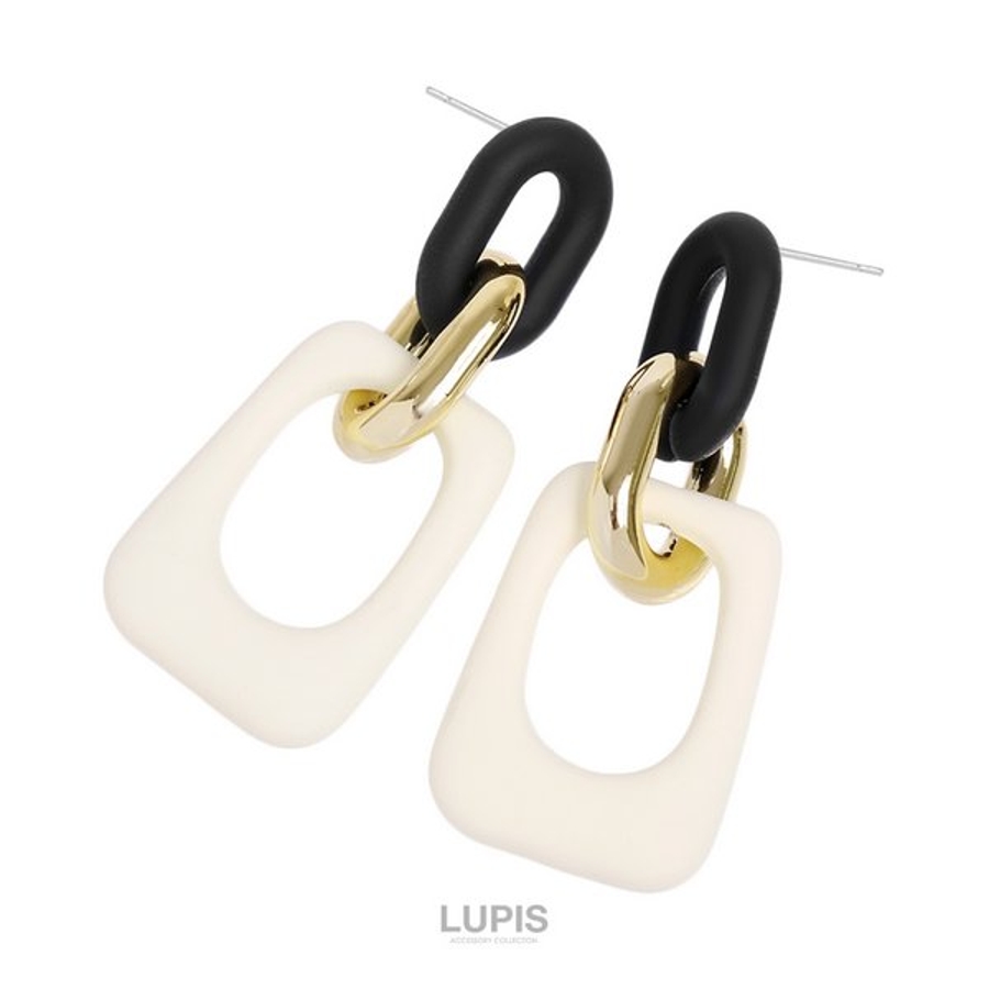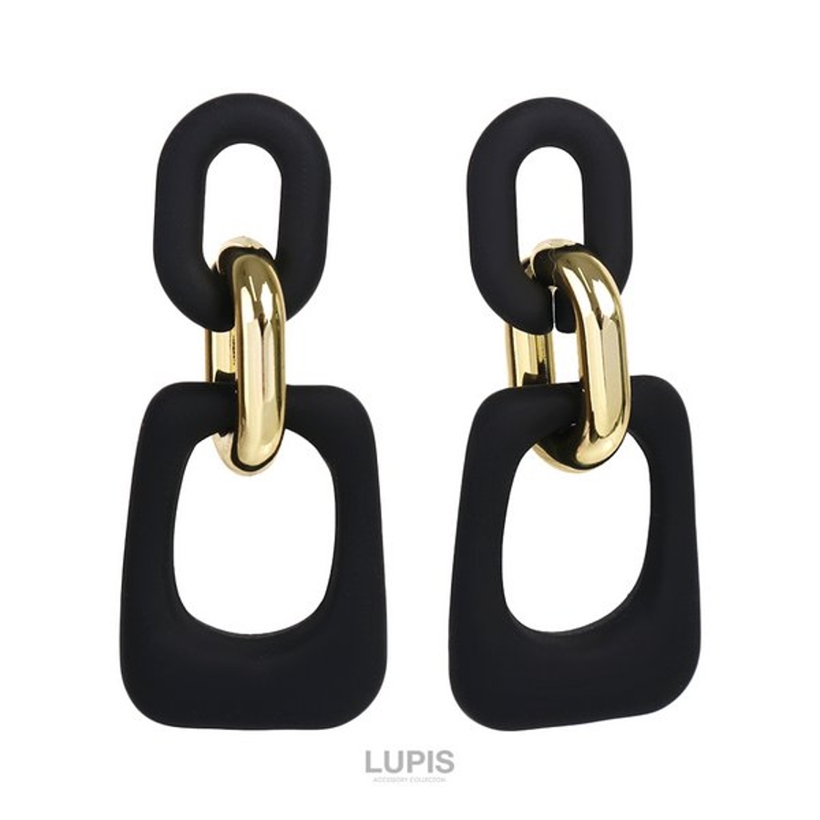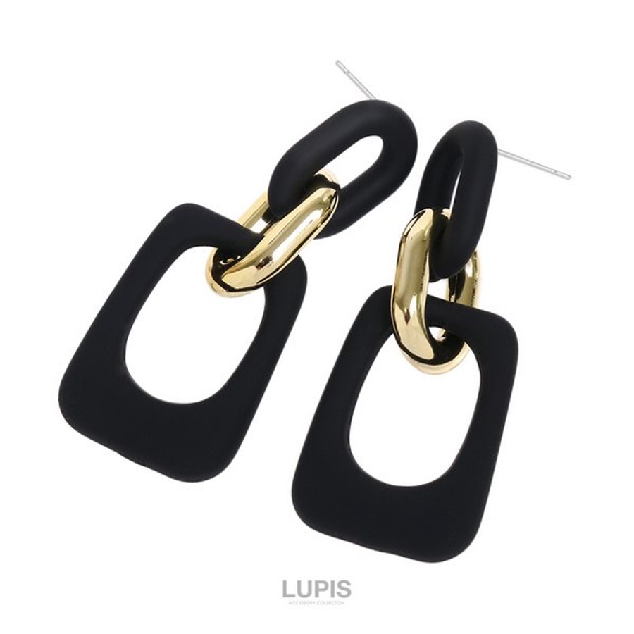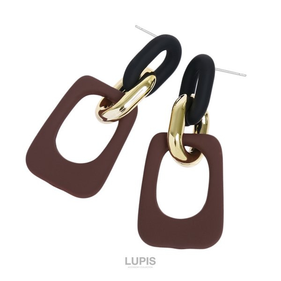 チェーンデザインのようなマットカラー×ゴールドの大ぶりピアス。