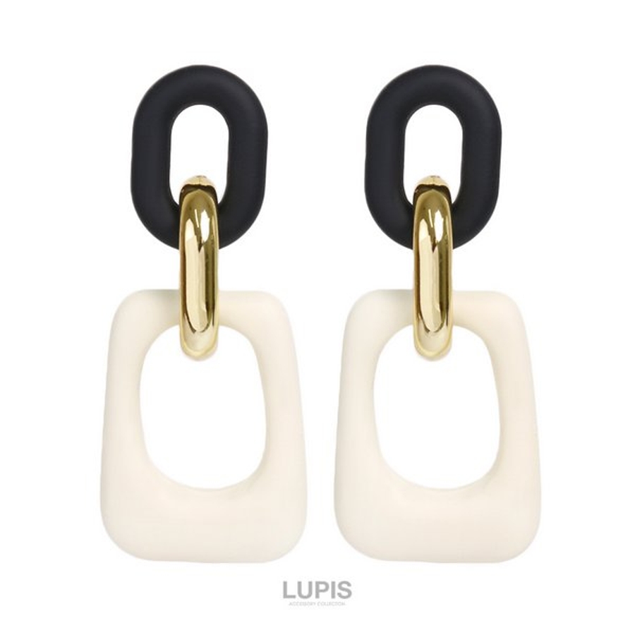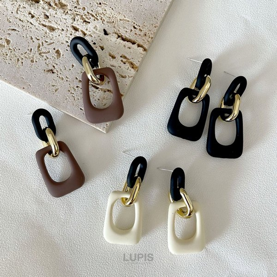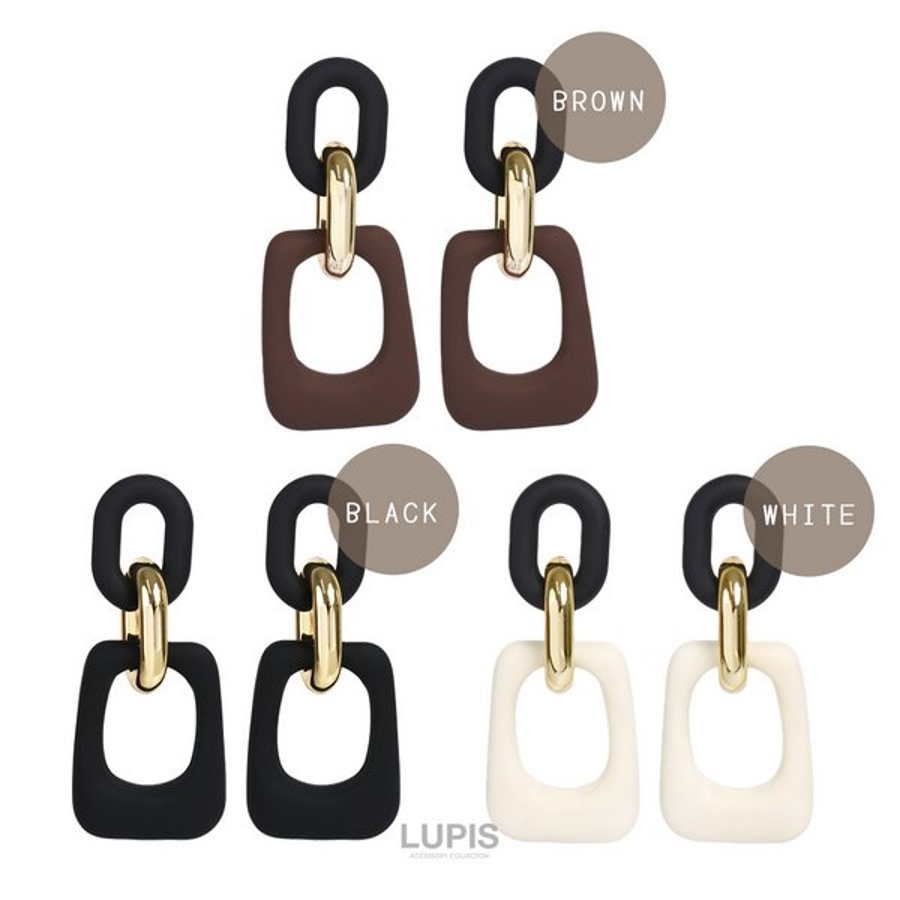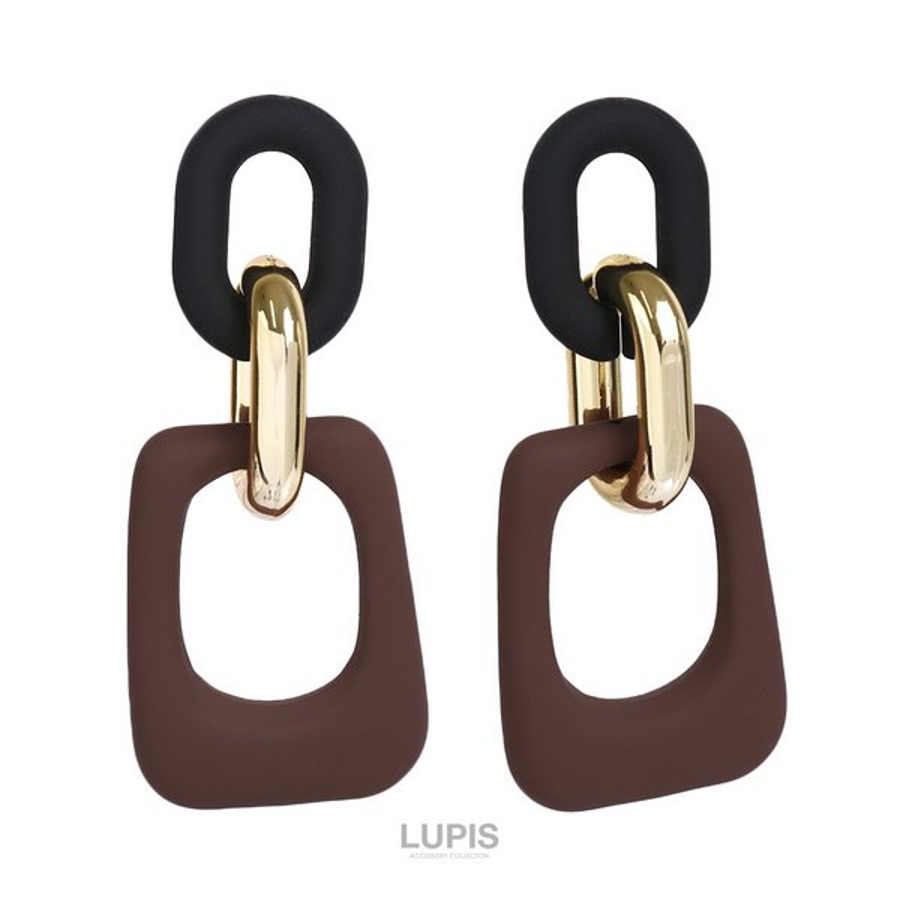 チェーンデザインのようなマットカラー×ゴールドの大ぶりピアス。
