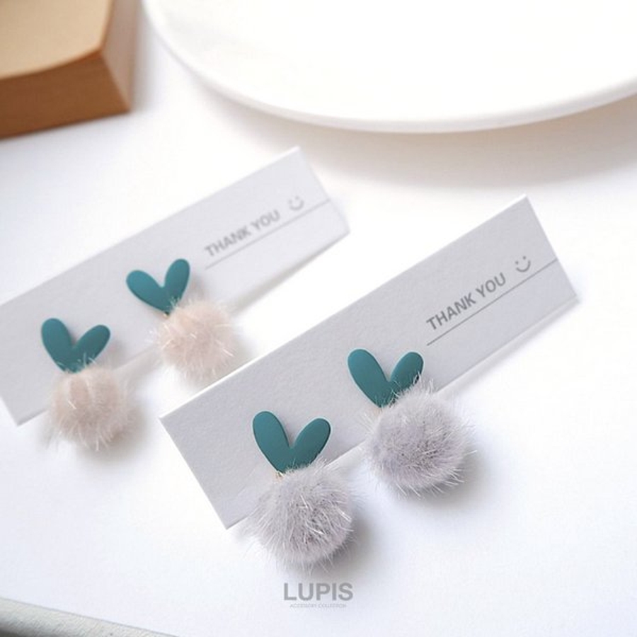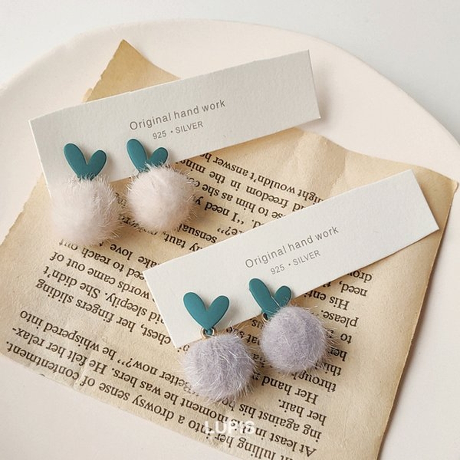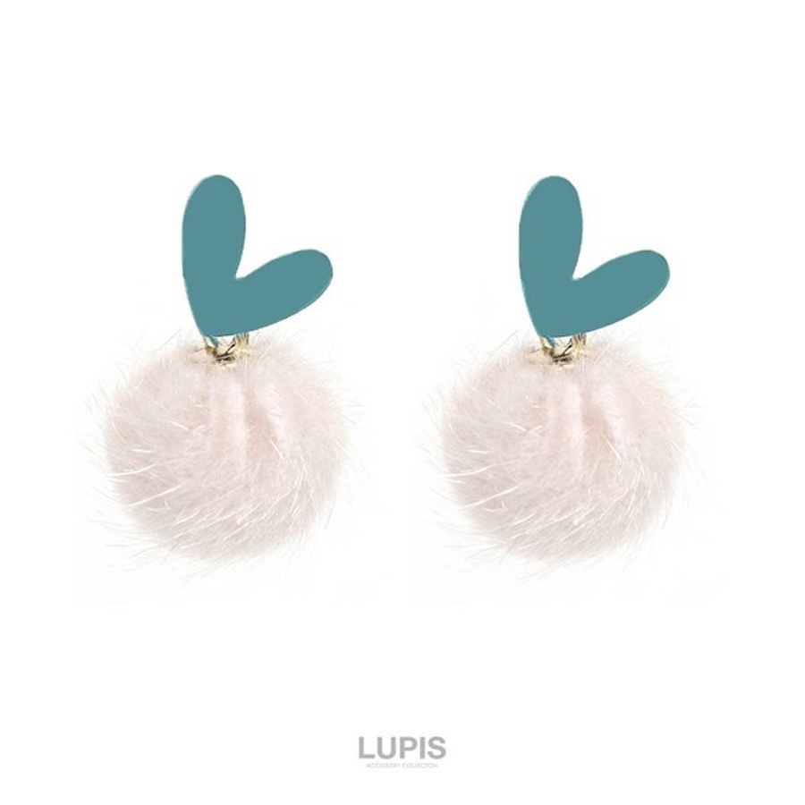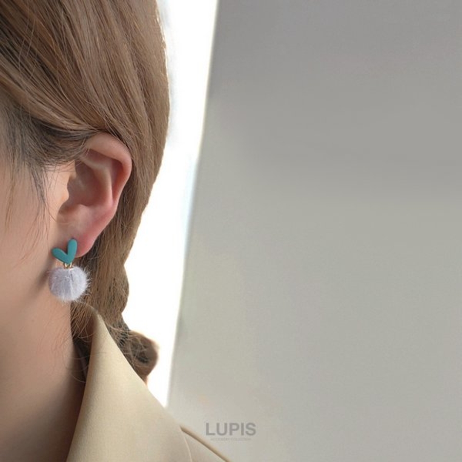 秋冬らしい可愛さがつまった、ハート×ファーボールピアス。
