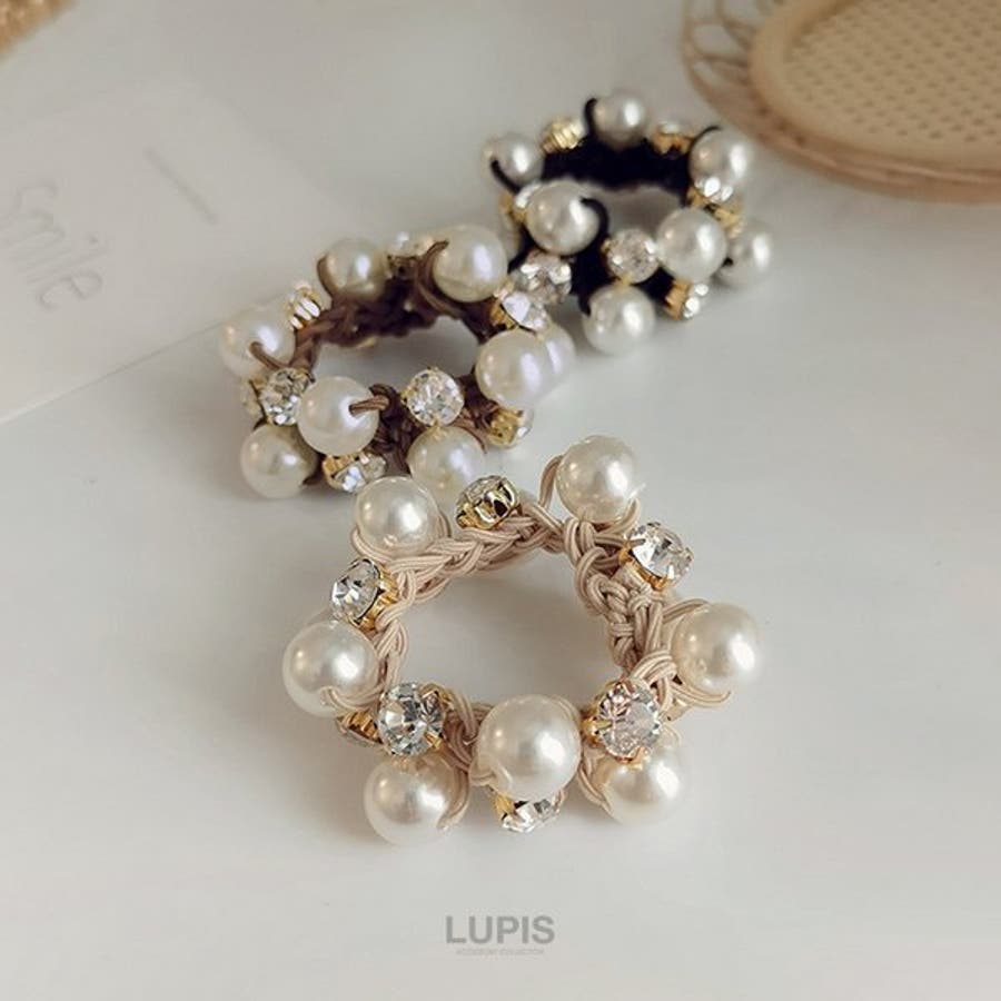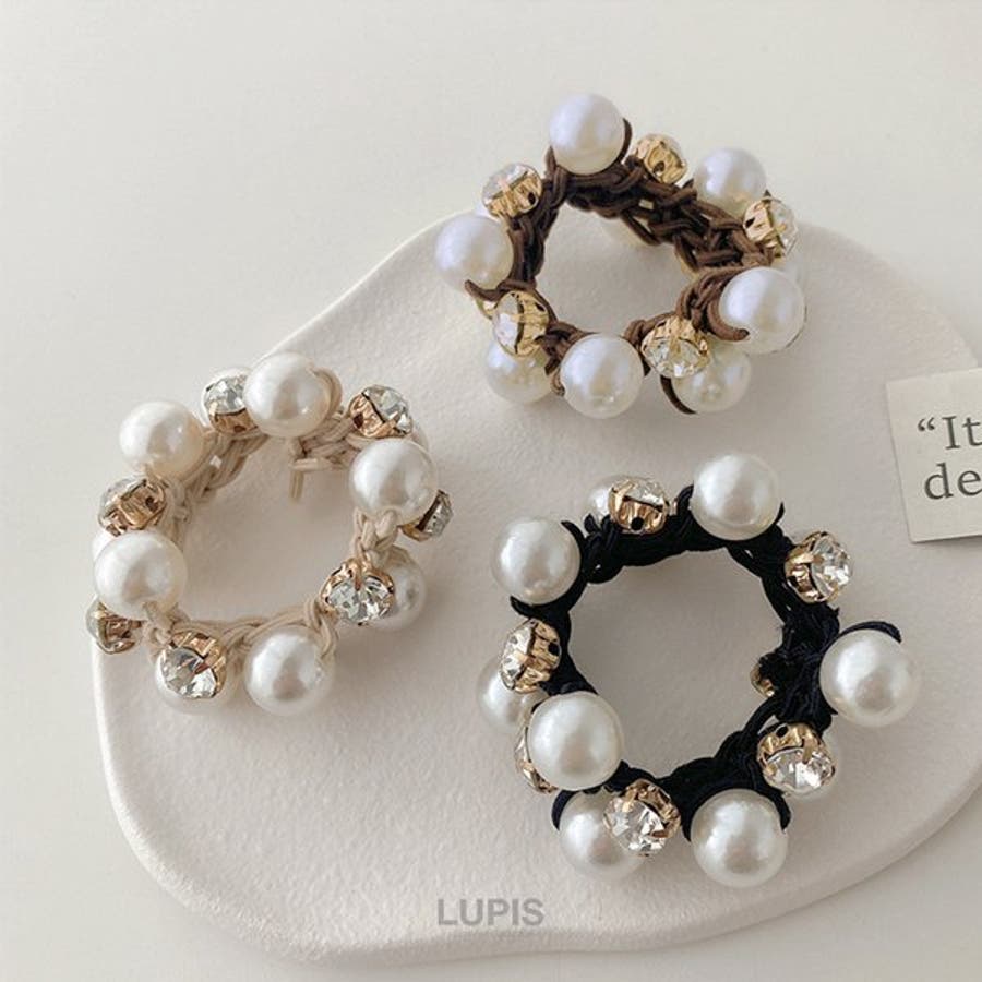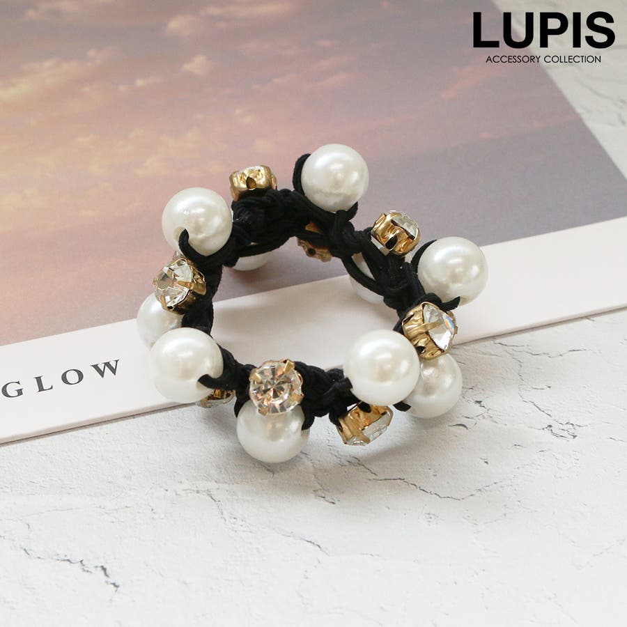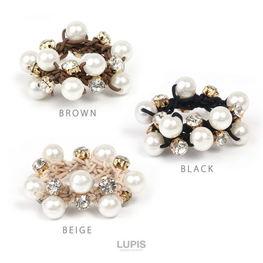 プチプラ 太め ヘアゴム 大人 おしゃれ かわいい 華やか 上品 エレガント ガーリー 韓国ファッション 韓国 パール ストーン ブラック ベージュ ブラウン ヘアアクセサリー 安い 春 夏 春夏 秋 冬 秋冬 ルピス LUPIS