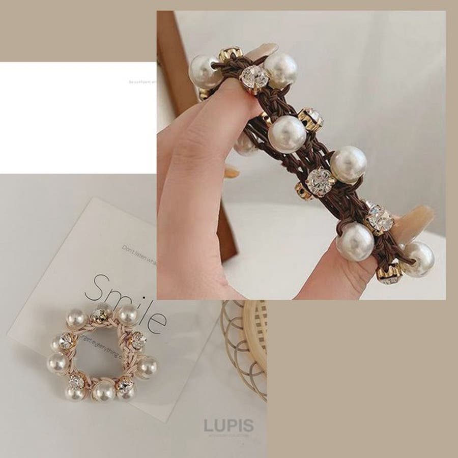【ブラウン】パール×ストーン編み込みヘアゴム【ヘアアクセサリー】