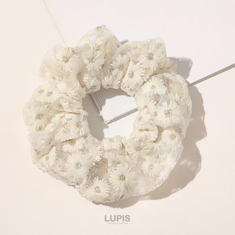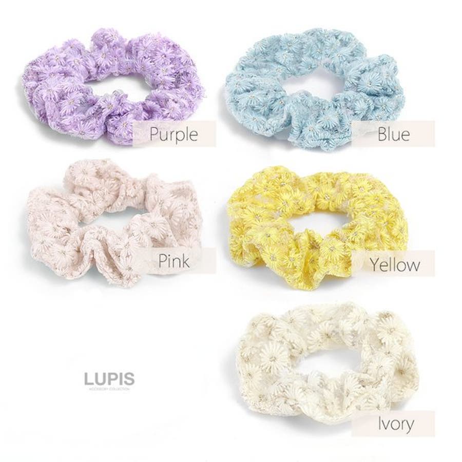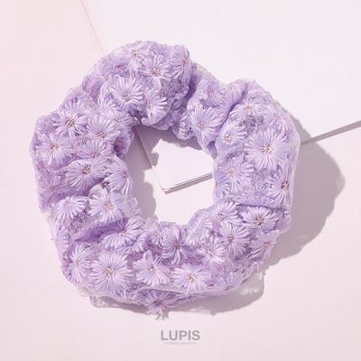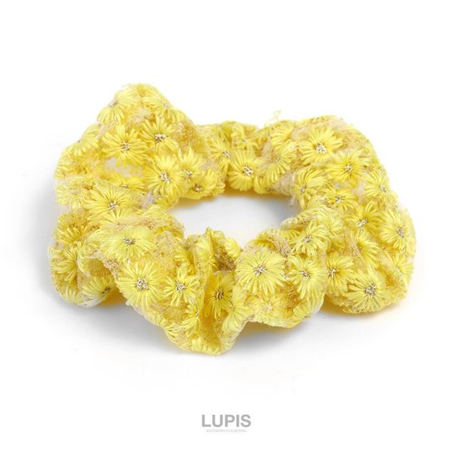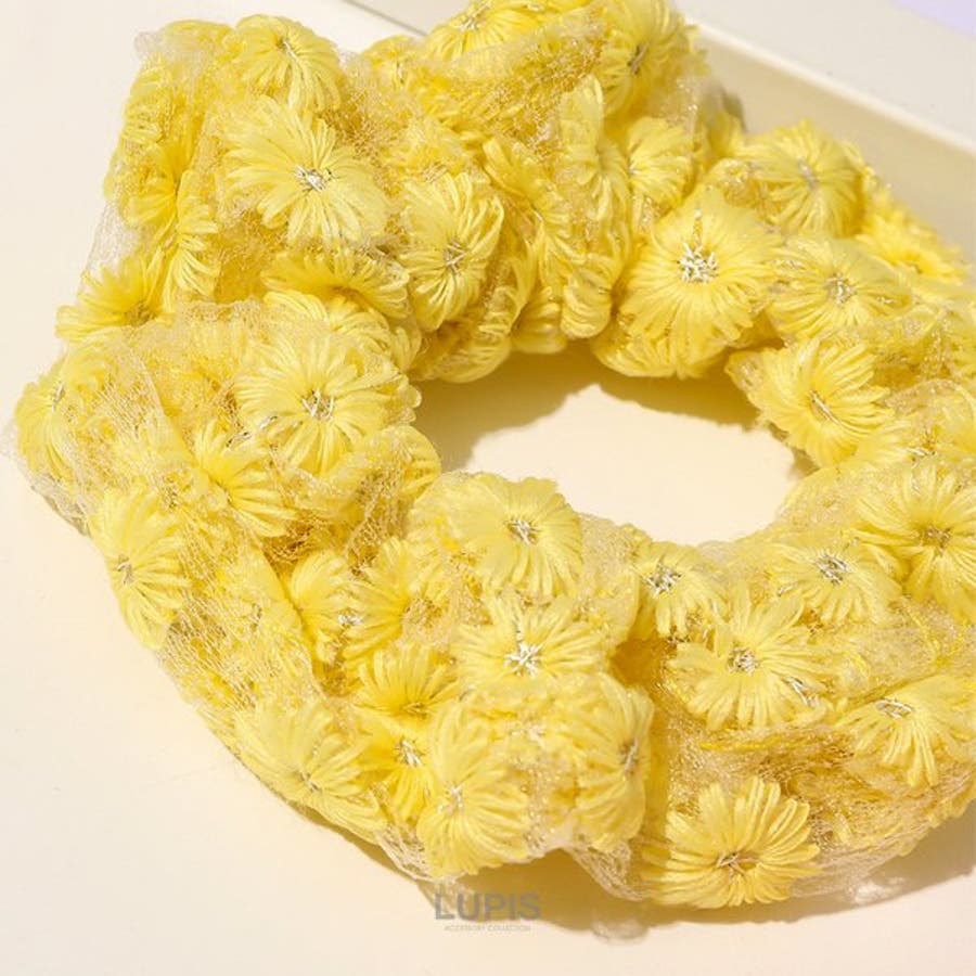 あたたか陽気のイメージがピッタリな刺繍フラワーシュシュ。