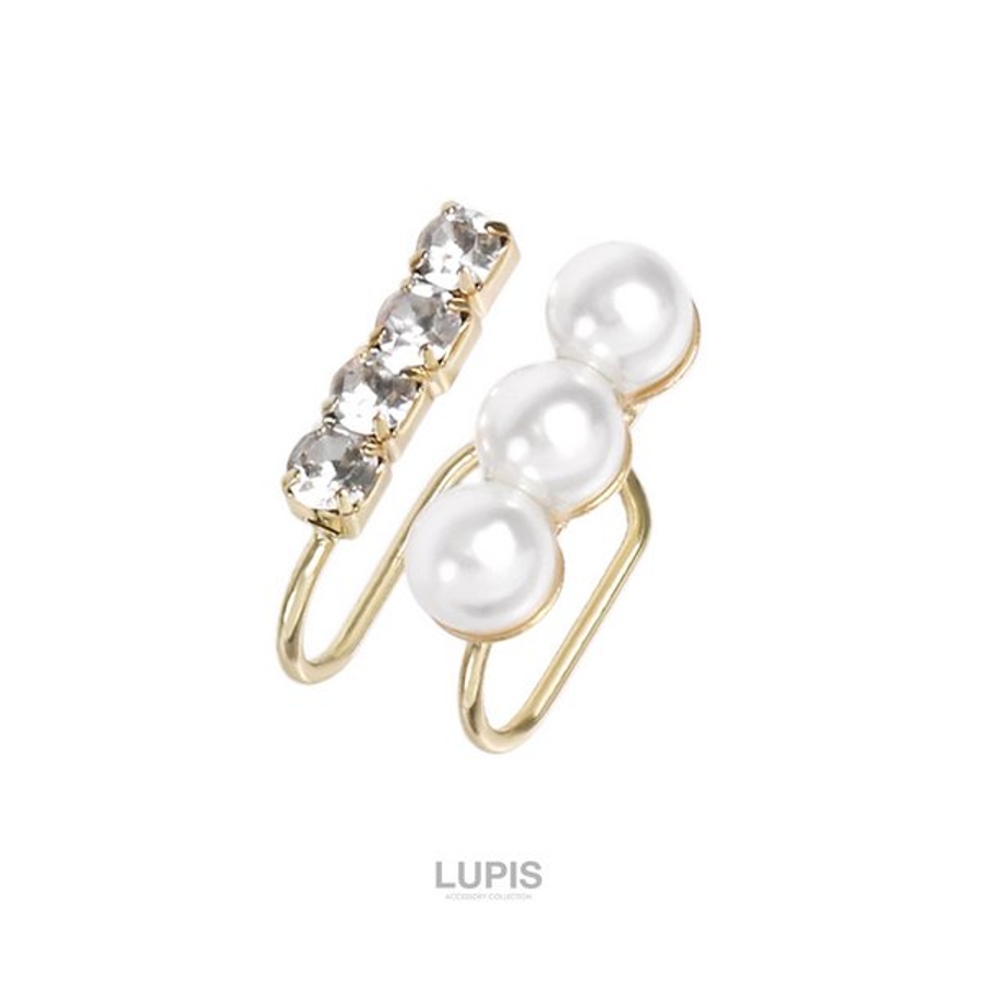 パール×ストーンのダブルラインイヤーカフ。