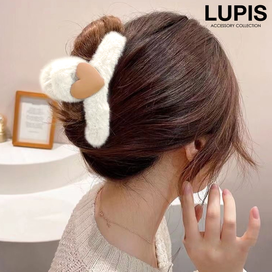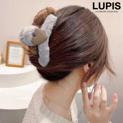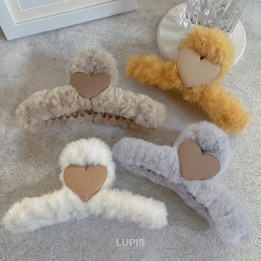 プチプラ バンスクリップ ヘアクリップ ガーリー 韓国ファッション 韓国 ハート ファー ホワイト グレー ブラウン マスタード ヘアアクセサリー 安い 秋 冬 秋冬 ルピス LUPIS