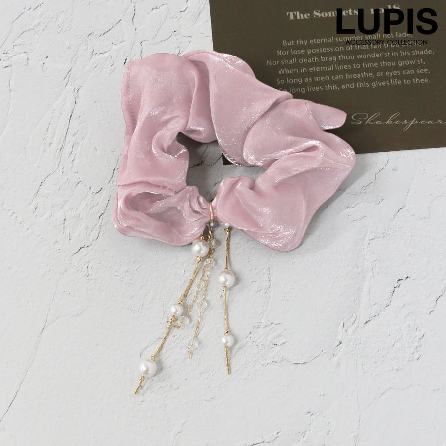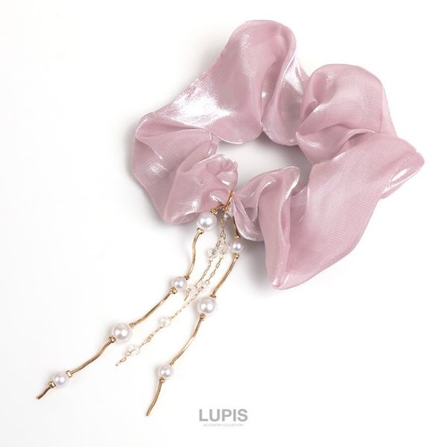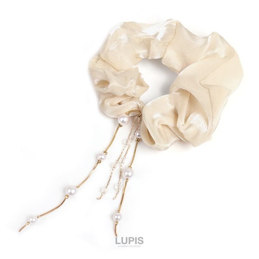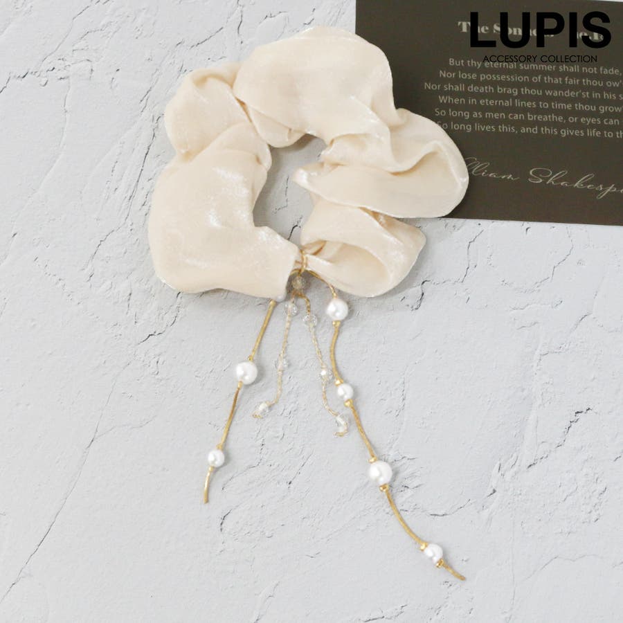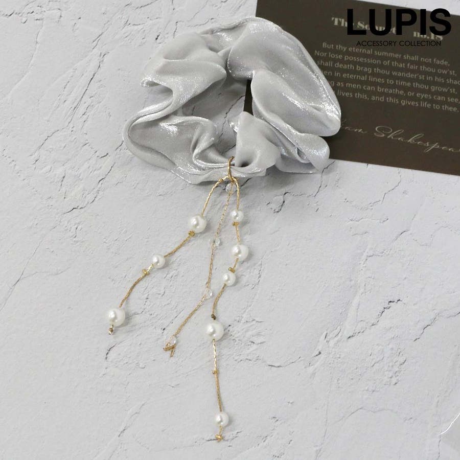 プチプラ 大人 ガーリー 韓国ファッション 韓国 上品 光沢 揺れる 華やか パール ゴールド チェーン シュシュ ヘアゴム ベージュ ブラック グレー パープル ヘアアクセサリー 安い 春 夏 秋 冬 春夏 秋冬 ルピス LUPIS
