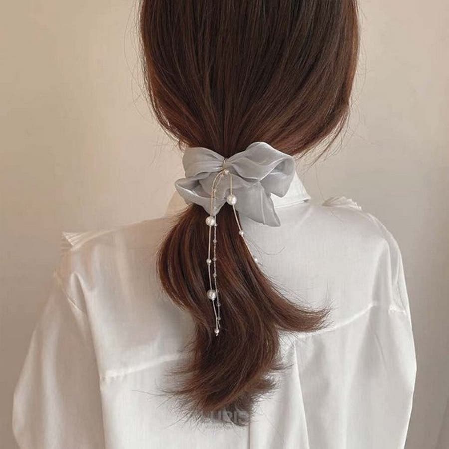 パールチェーン付きシュシュ【ヘアアクセサリー】