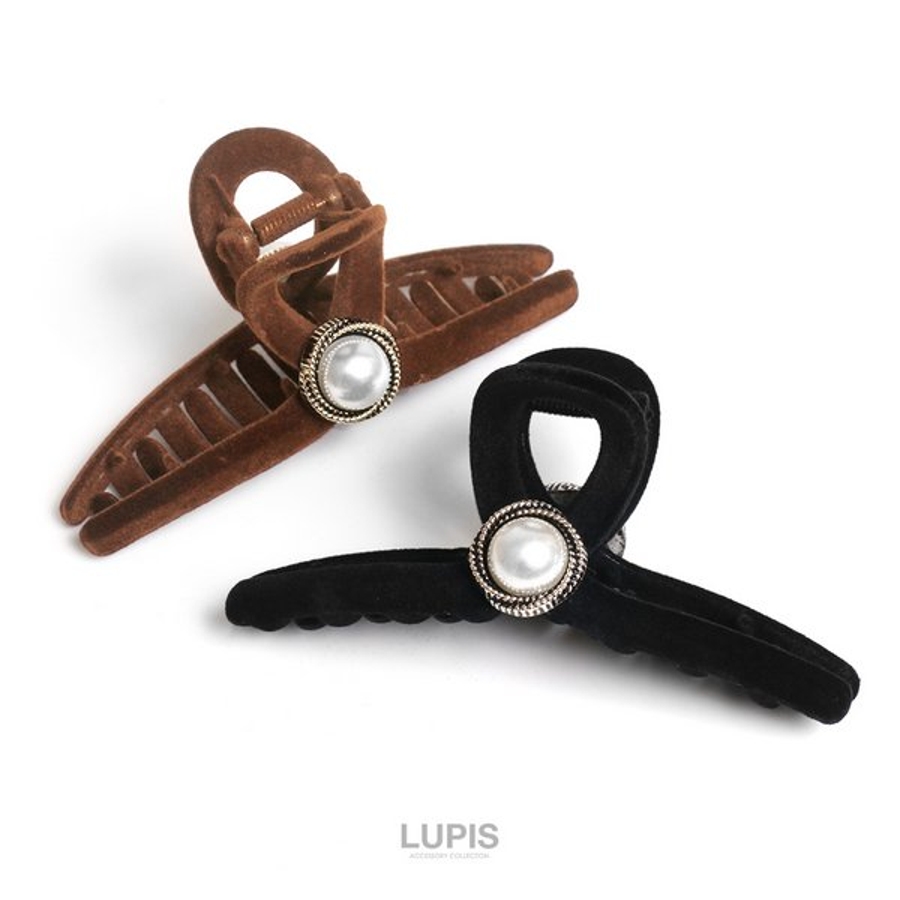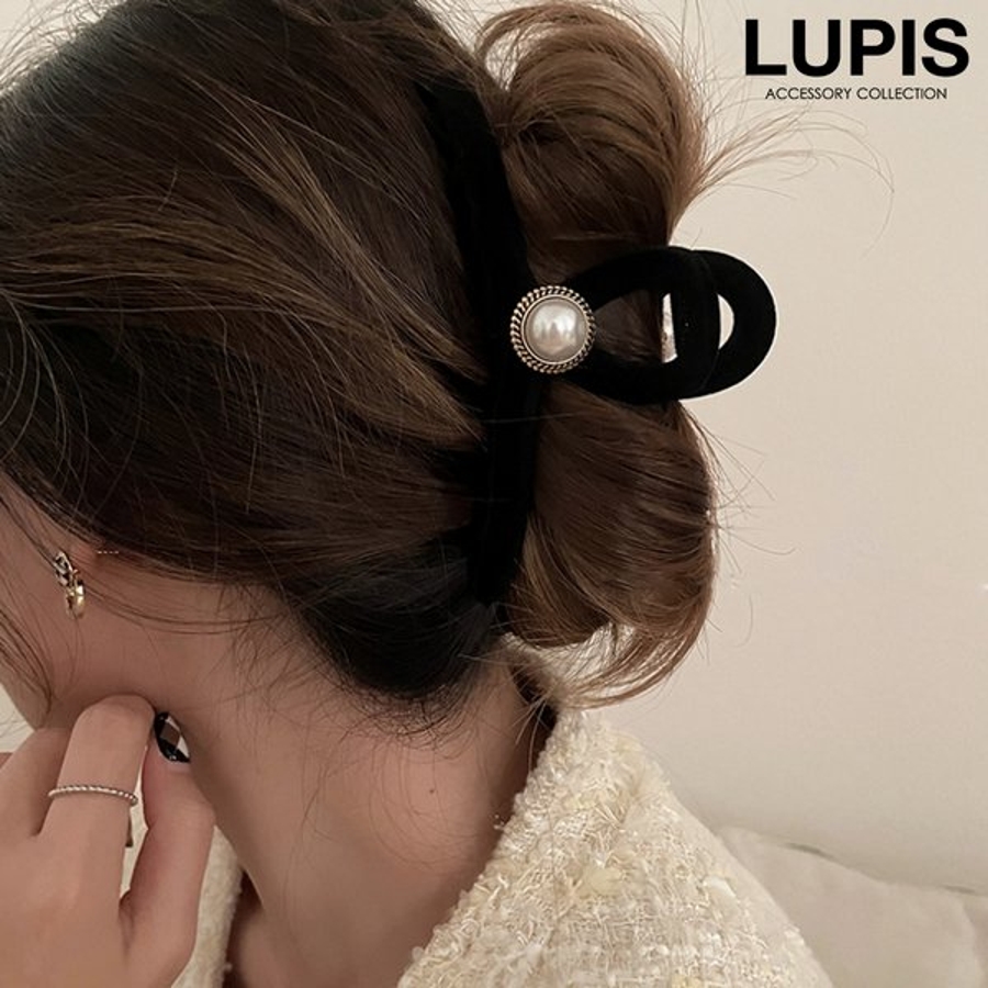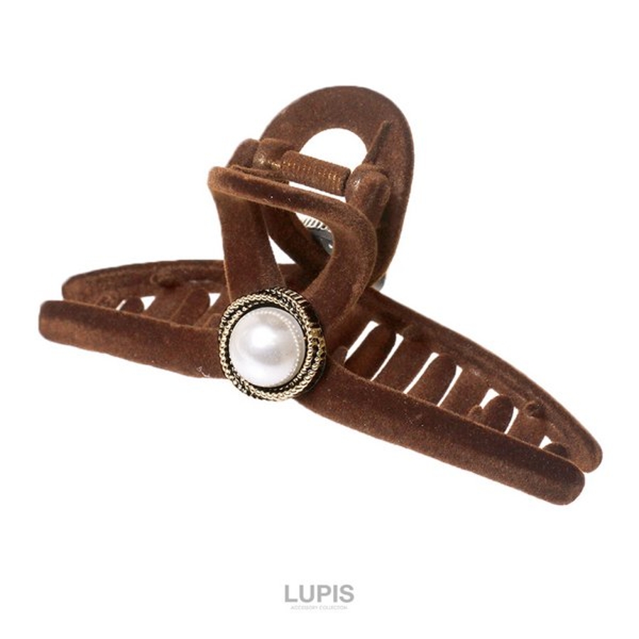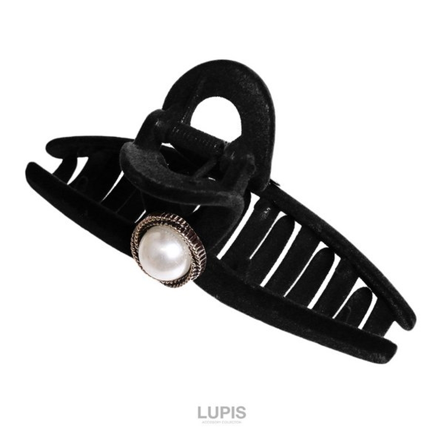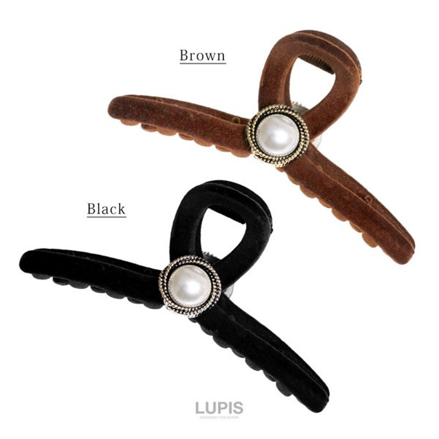 プチプラ バンスクリップ ヘアクリップ 大人 レトロ ループライン クラシカル 上品 シンプル ベロア風 韓国ファッション 韓国 パール ブラック ブラウン ヘアアクセサリー 安い 秋 冬 秋冬 ルピス LUPIS