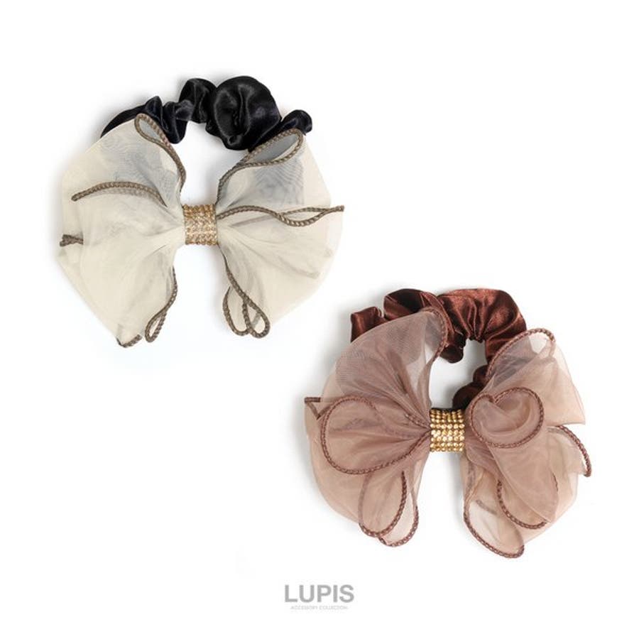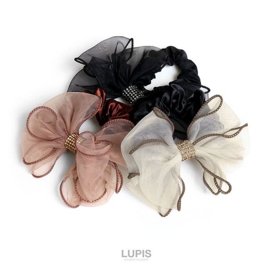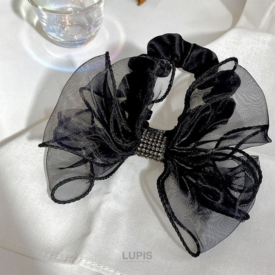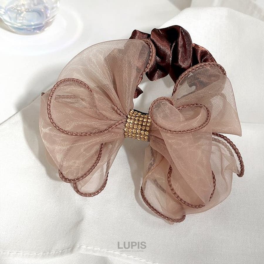 プチプラ ヘアゴム シュシュ リボン 可愛い かわいい 大人 ガーリー フェミニン 上品 大人 おしゃれ きれいめ オーガンジー シアー 透け感 リボン ストーン パヴェ ホワイト ブラック ブラウン 10代 20代 30代 ヘアアクセサリー レディース 女性 アクセサリー アクセ 安い 春 夏 春夏 秋 冬 秋冬 ルピス LUPIS