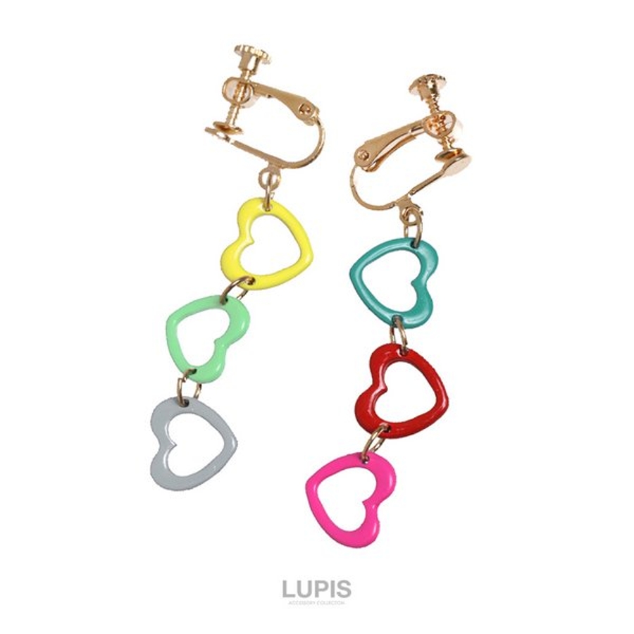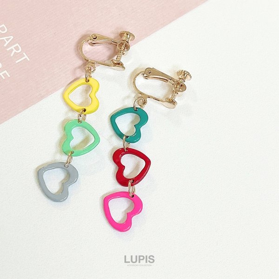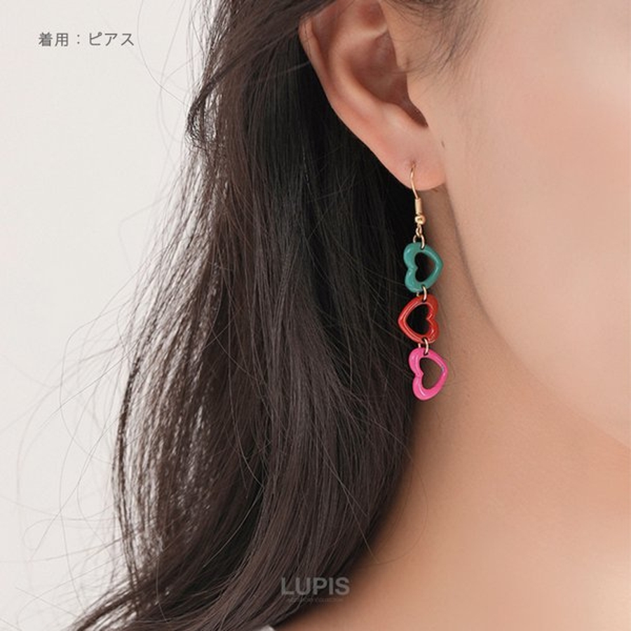 3連カラーハートイヤリング【ネジバネ式 長め】