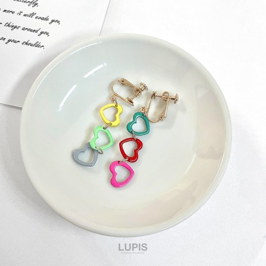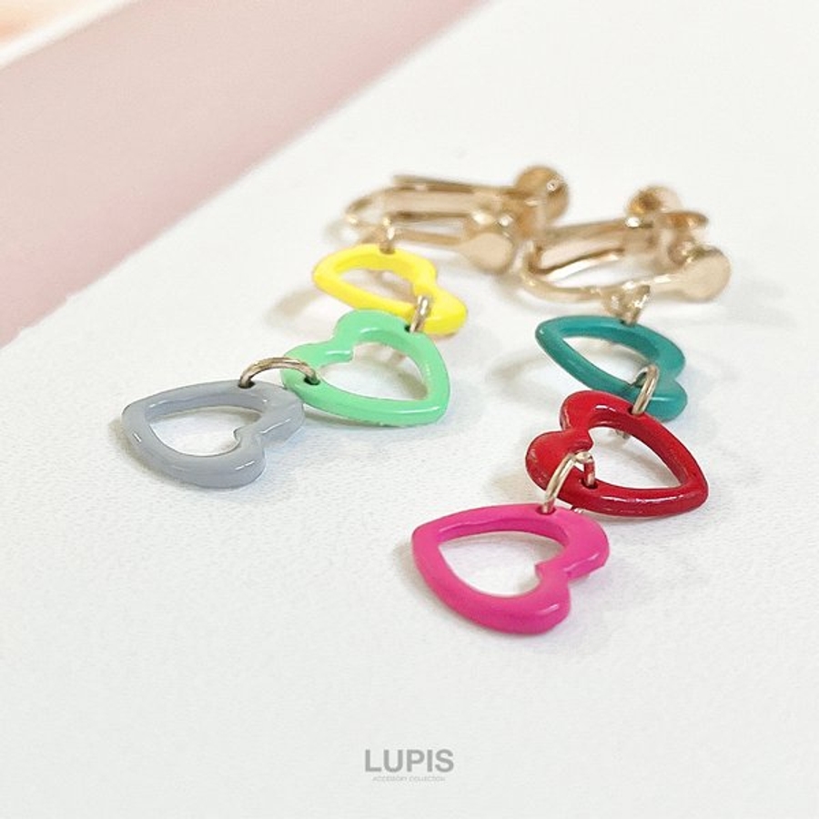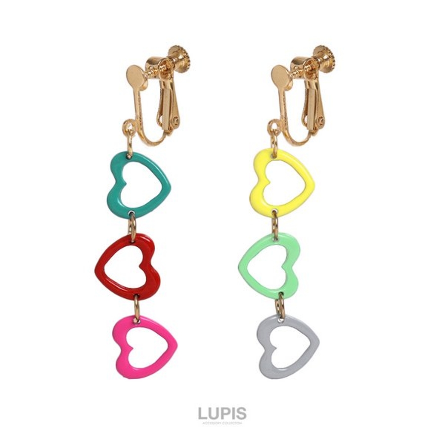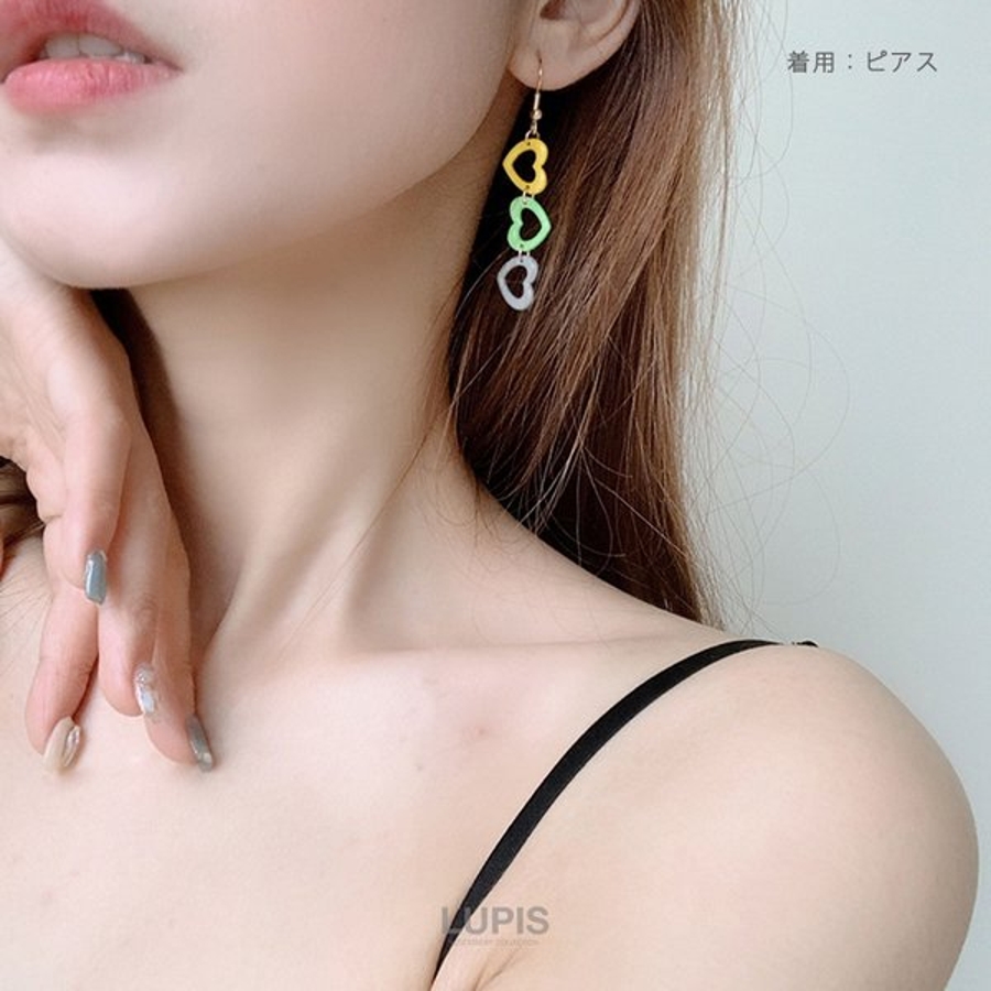 プチプラ ネジバネ式 揺れる ロング 長め イヤリング かわいい 可愛い おしゃれ ガーリー 華やか 韓国ファッション 韓国 ハート カラフル ポップ ビビットカラー ゴールド イエロー グリーン グレー ブルー ピンク レッド 10代 20代 30代 40代 レディース 女性 アクセサリー アクセ 安い 春 夏 春夏 秋 冬 秋冬 ルピス LUPIS