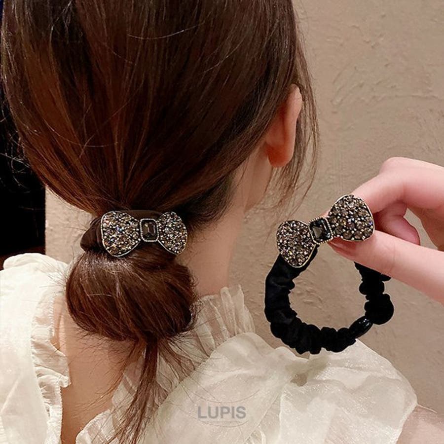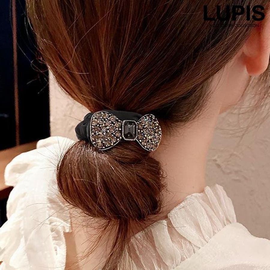プチプラ ヘアゴム リボン 可愛い かわいい おしゃれ ガーリー ブラック ストーン パヴェ ビジュー ストーン キラキラ アンティーク クラシカル 大人かわいい シック 大人 韓国 韓国ファッション 10代 20代 30代 レディース 女性 アクセサリー アクセ 安い 春 夏 春夏 秋 冬 秋冬 ルピス LUPIS