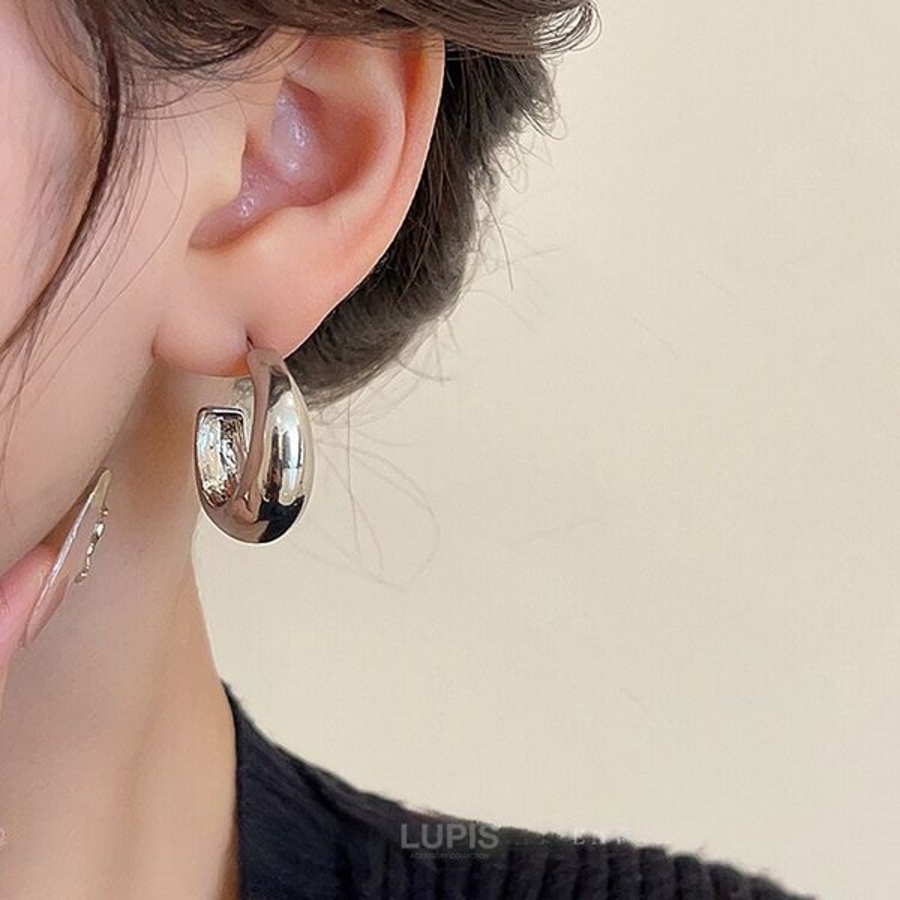 ぷっくりとボリュームのあるメタルフープピアス。