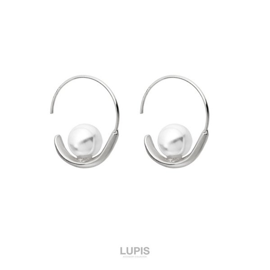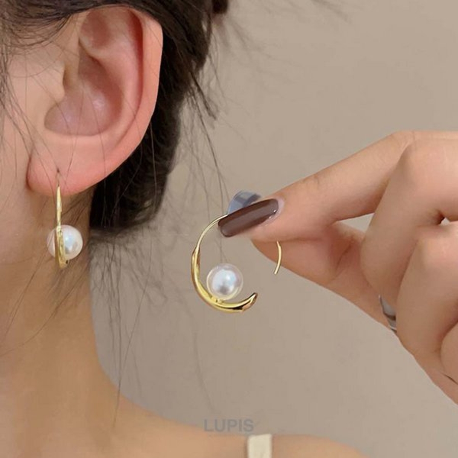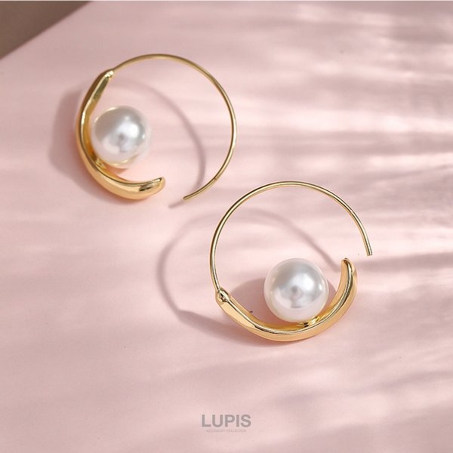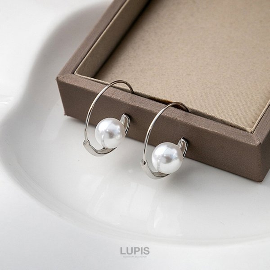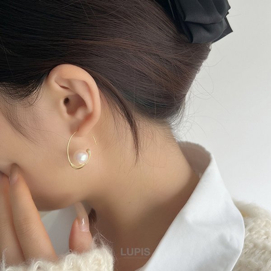 一粒のパールをあしらったエレガントなフープピアス。