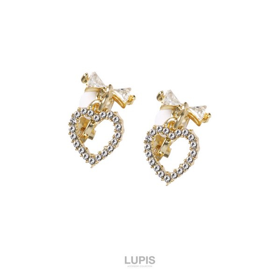 プチプラ イヤリング クリップ式 可愛い かわいい ガーリー 大人 大人ガーリー パヴェ 上品 華やか キラキラ ハート リボン ストーン ゴールド 10代 20代 レディース 女性 アクセサリー アクセ 安い 春 夏 春夏 秋 冬 秋冬 ルピス LUPIS