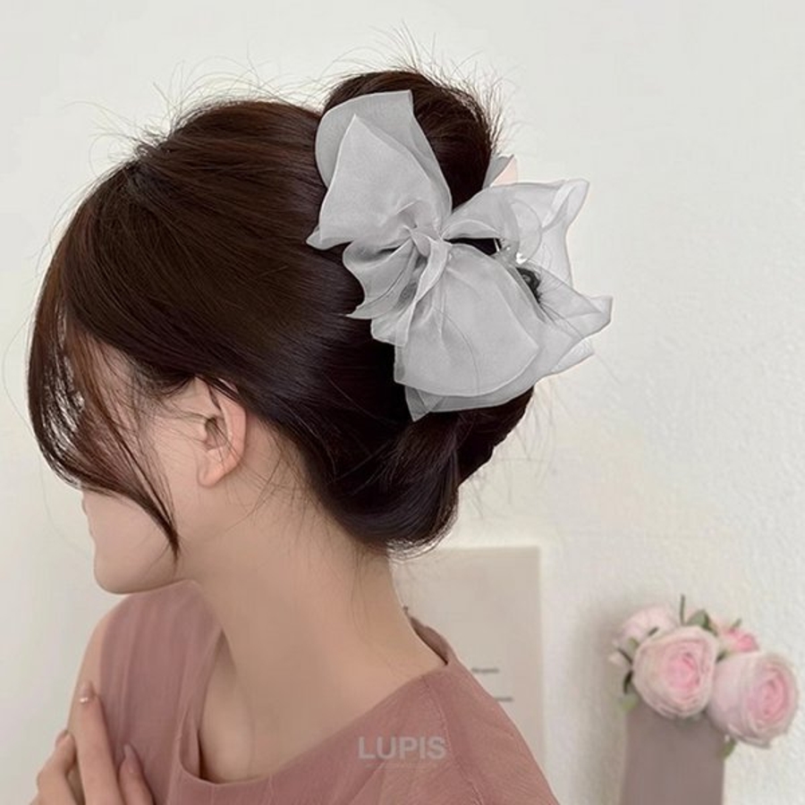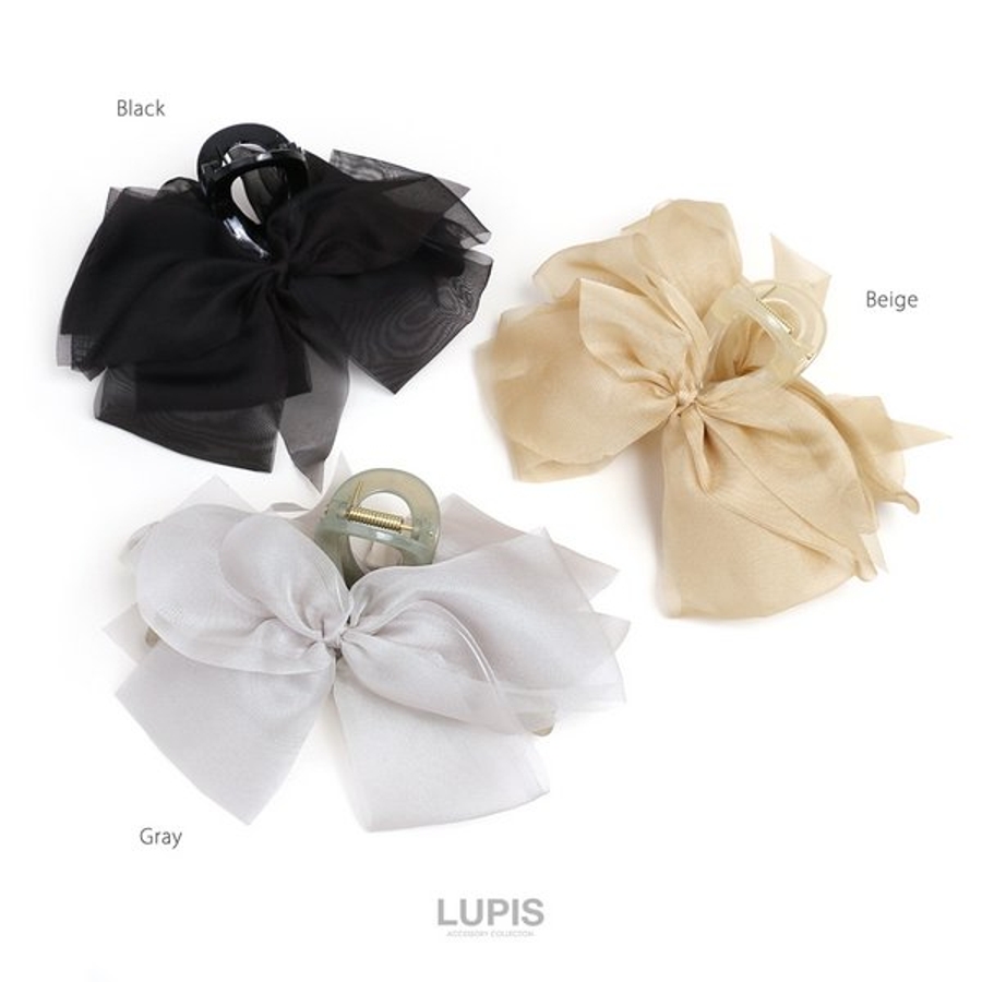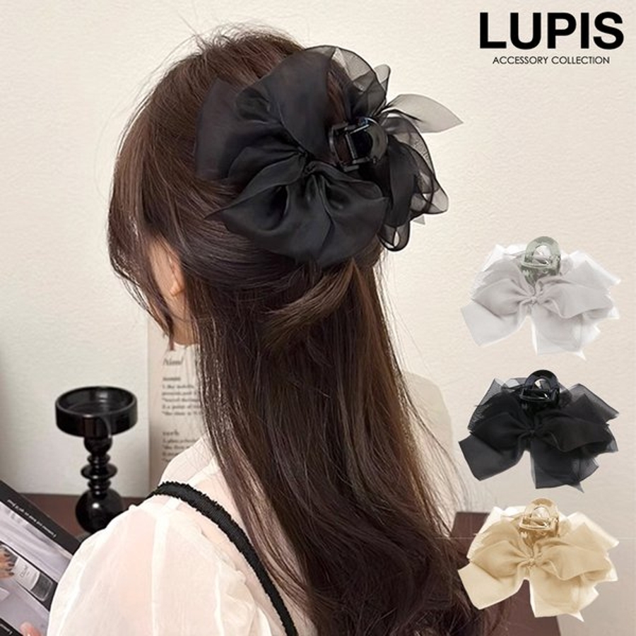 プチプラ バンスクリップ ヘアクリップ ヘアアクセサリー かわいい 可愛い 大人 リボン 上品 簡単 ヘアアレンジ まとめ髪 髪留め ふわふわ シフォン ガーリー 華やか ハレの日 式 ブラック グレー ベージュ 10代 20代 30代 レディース 女性 アクセサリー アクセ 安い 春 夏 春夏 秋 冬 秋冬 ルピス LUPIS