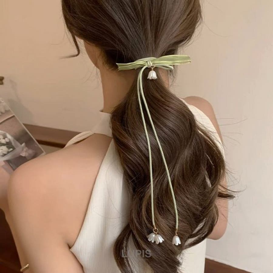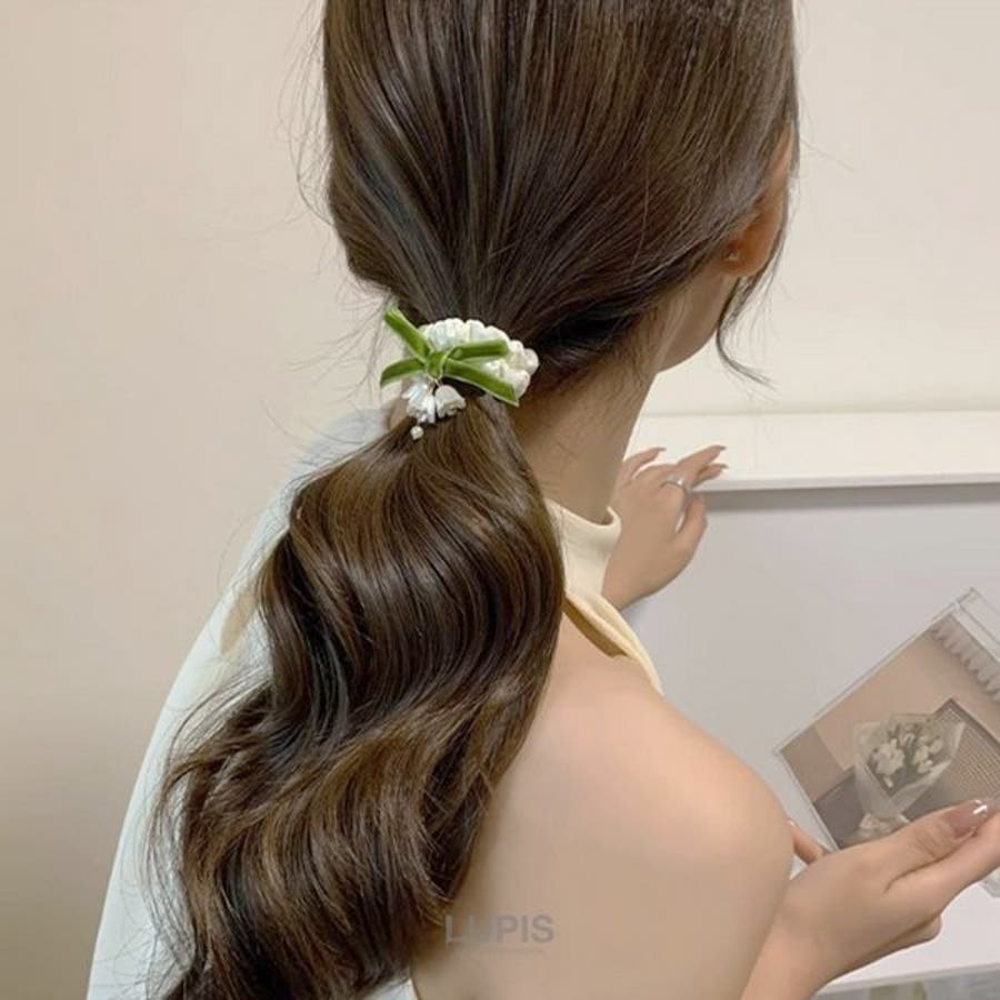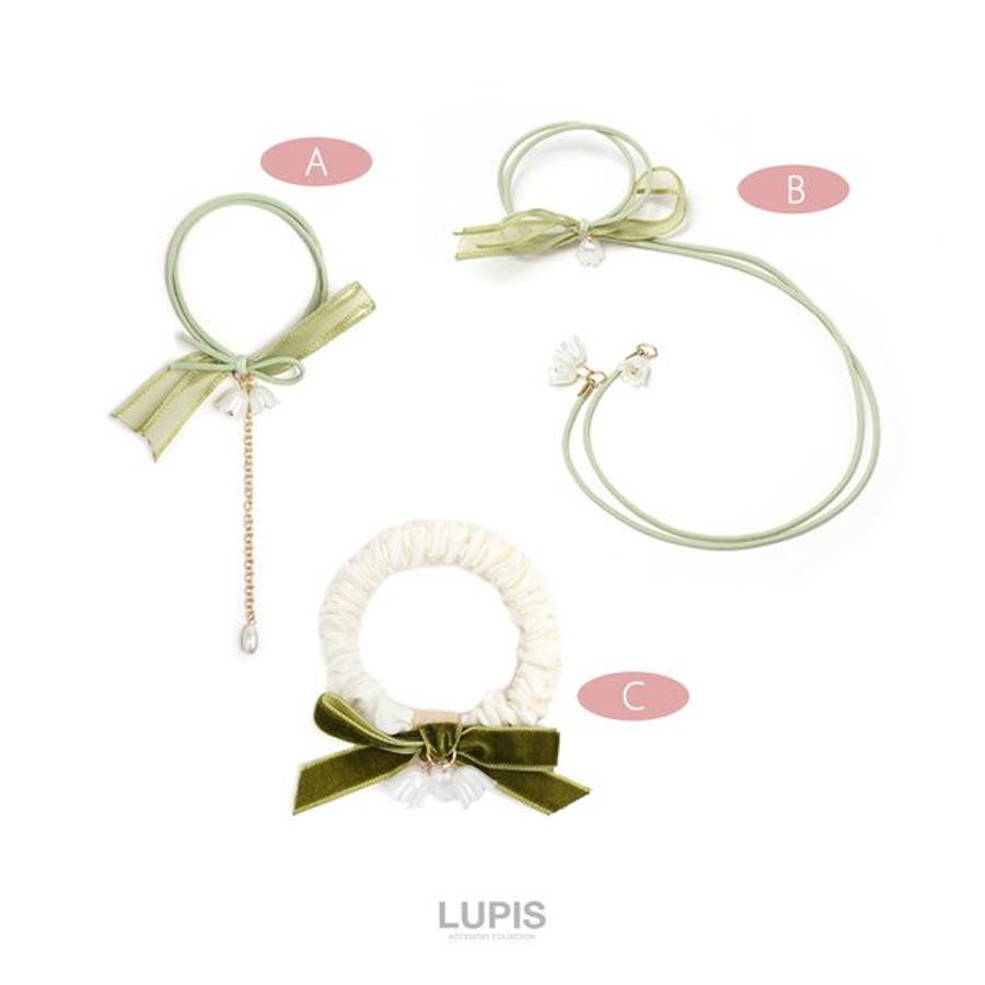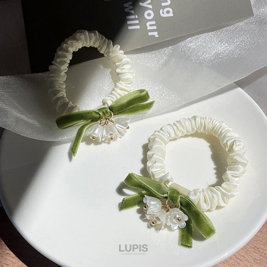 プチプラ ヘアゴム ヘアアクセサリー かわいい 可愛い ガーリー 大人 エレガント 上品 華やか おしゃれ オシャレ スズラン すずらん フラワー 花 リボン チェーン グリーン ホワイト 10代 20代 30代 レディース 女性 アクセサリー アクセ 安い 春 夏 春夏 秋 冬 秋冬 ルピス LUPIS