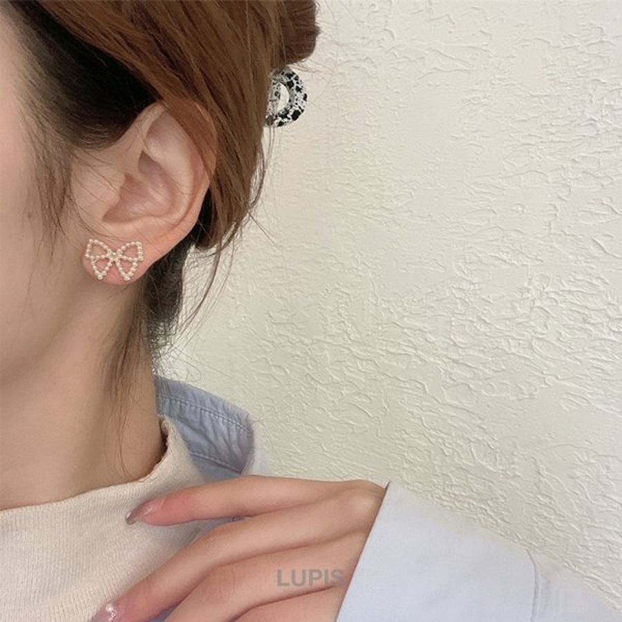プチプラ シルバー925ポスト S925ポスト ピアス リボン パール 上品 華やか ガーリー フェミニン 大人 シンプル オケージョン 韓国 韓国ファッション 10代 20代 30代 レディース 女性 アクセサリー アクセ 安い 春 夏 春夏 秋 冬 秋冬 ルピス LUPIS