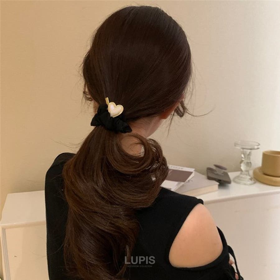 プチプラ シュシュ ヘアゴム ヘアアクセサリー かわいい ガーリー ハート オーロラ ブラック ゴールド まとめ髪 ポニー ヘアアレンジ おだんご 韓国 韓国ファッション 10代 20代 30代 レディース 女性 アクセサリー アクセ 安い 春 夏 春夏 秋 冬 秋冬 ルピス LUPIS