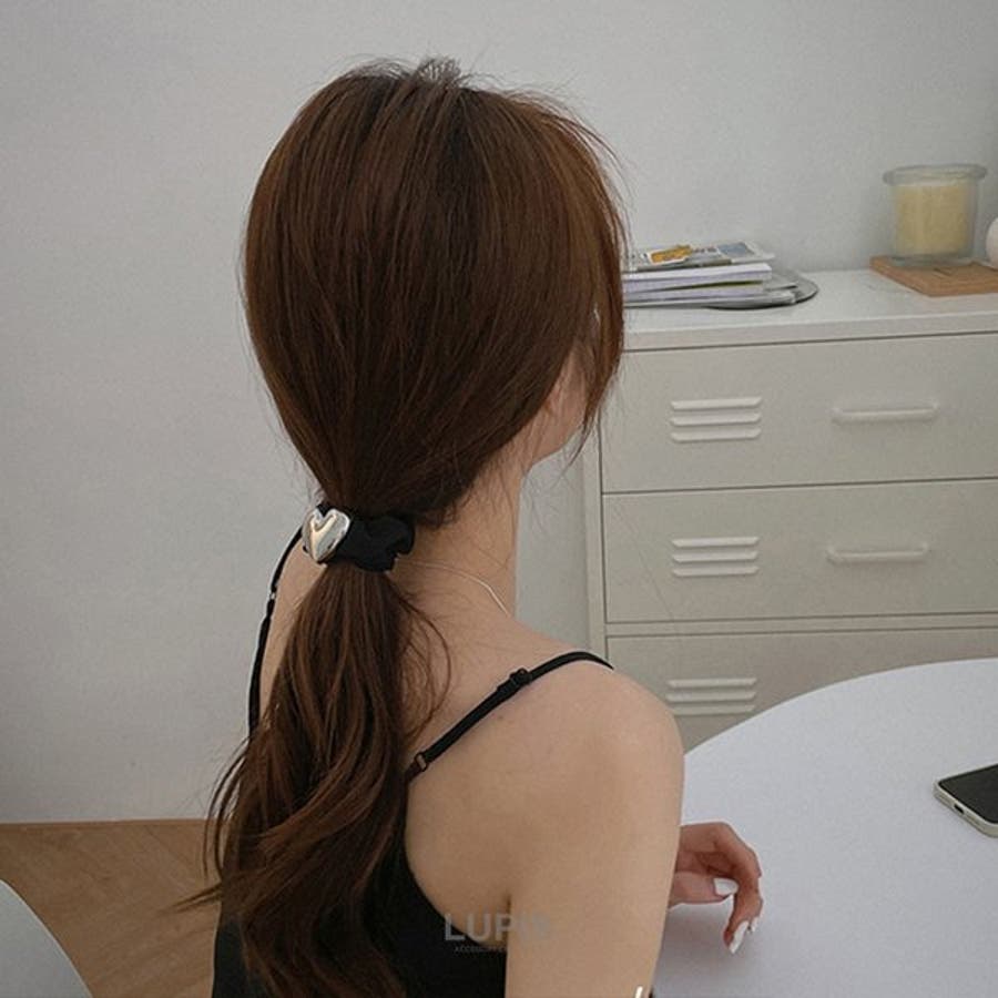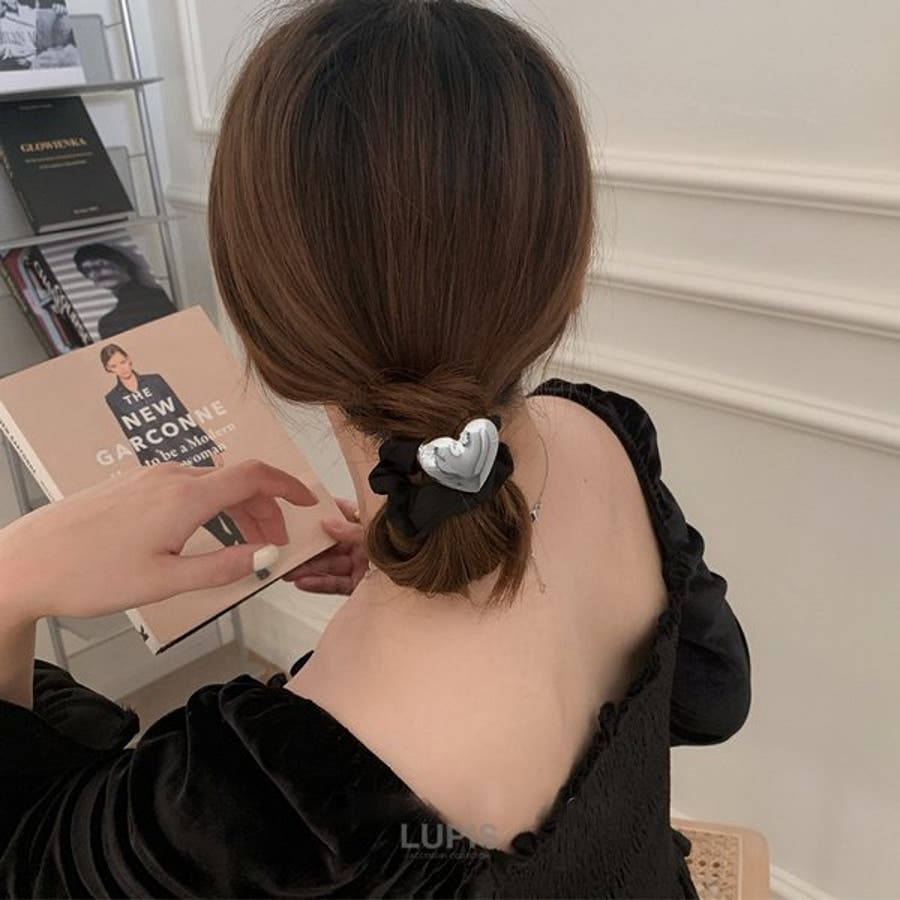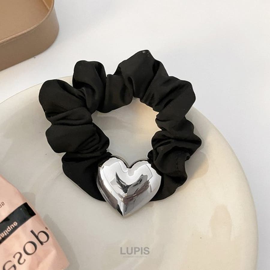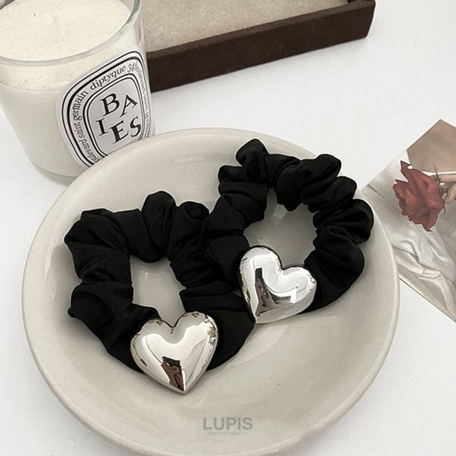 プチプラ シュシュ ヘアゴム ヘアアクセサリー メタル ハート かわいい 大人 カジュアル きれいめ シンプル まとめ髪 ポニー ヘアアレンジ 韓国 韓国ファッション ブラック シルバー 10代 20代 30代 レディース 女性 アクセサリー アクセ 安い 春 夏 春夏 秋 冬 秋冬 ルピス LUPIS