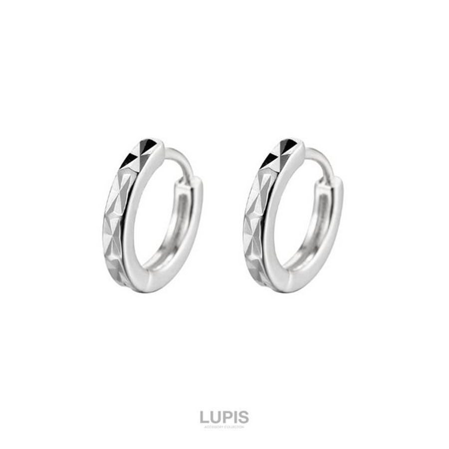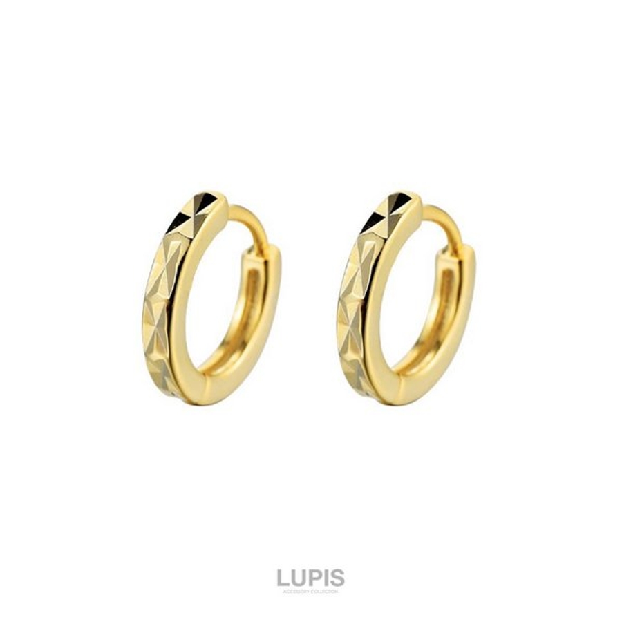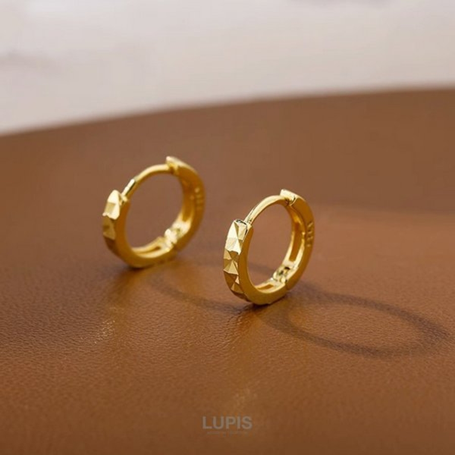 幾何学なカット面がキラキラと煌めくフープピアス。