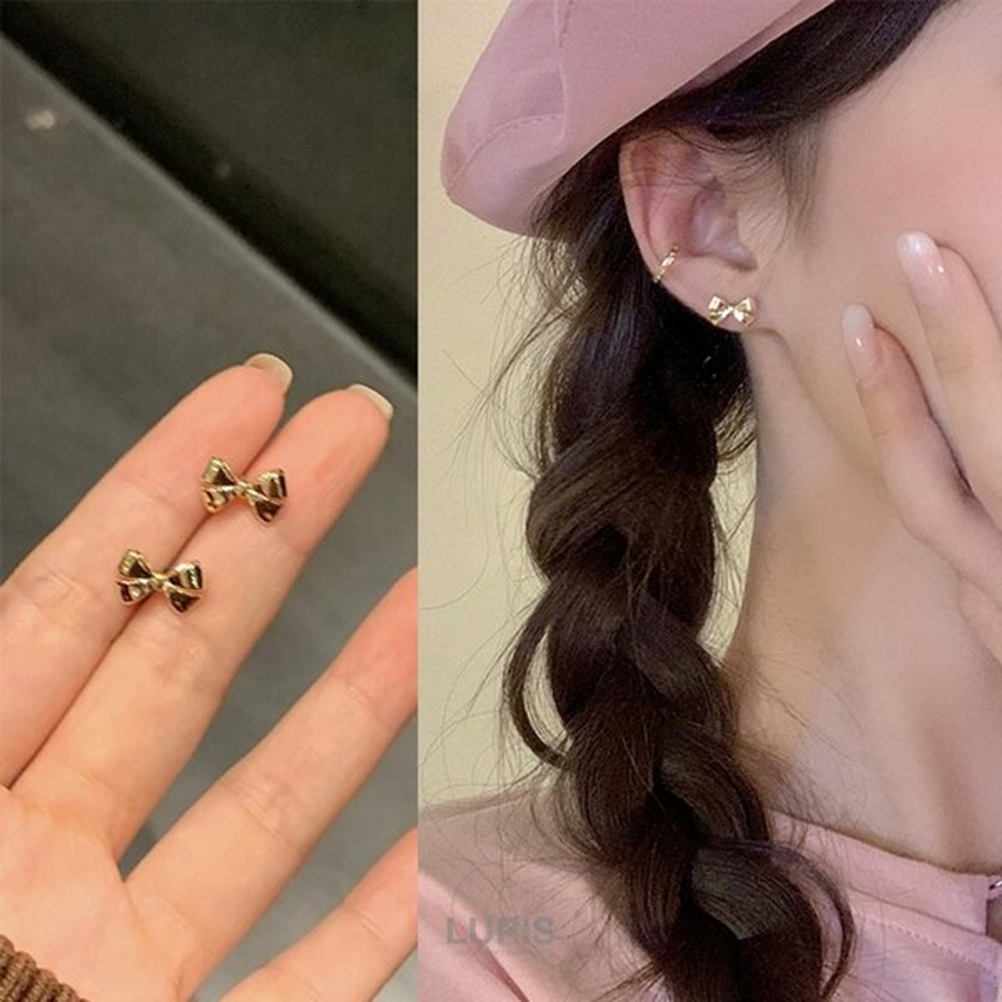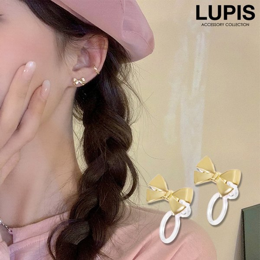 プチプラ イヤリング ノンホールピアス リボン 樹脂 痛くなりにくい メタル シンプル 上品 小ぶり 小さめ ワンポイント ガーリー 韓国 韓国ファッション ゴールド 10代 20代 30代 レディース 女性 アクセサリー アクセ 安い 春 夏 春夏 秋 冬 秋冬 ルピス LUPIS