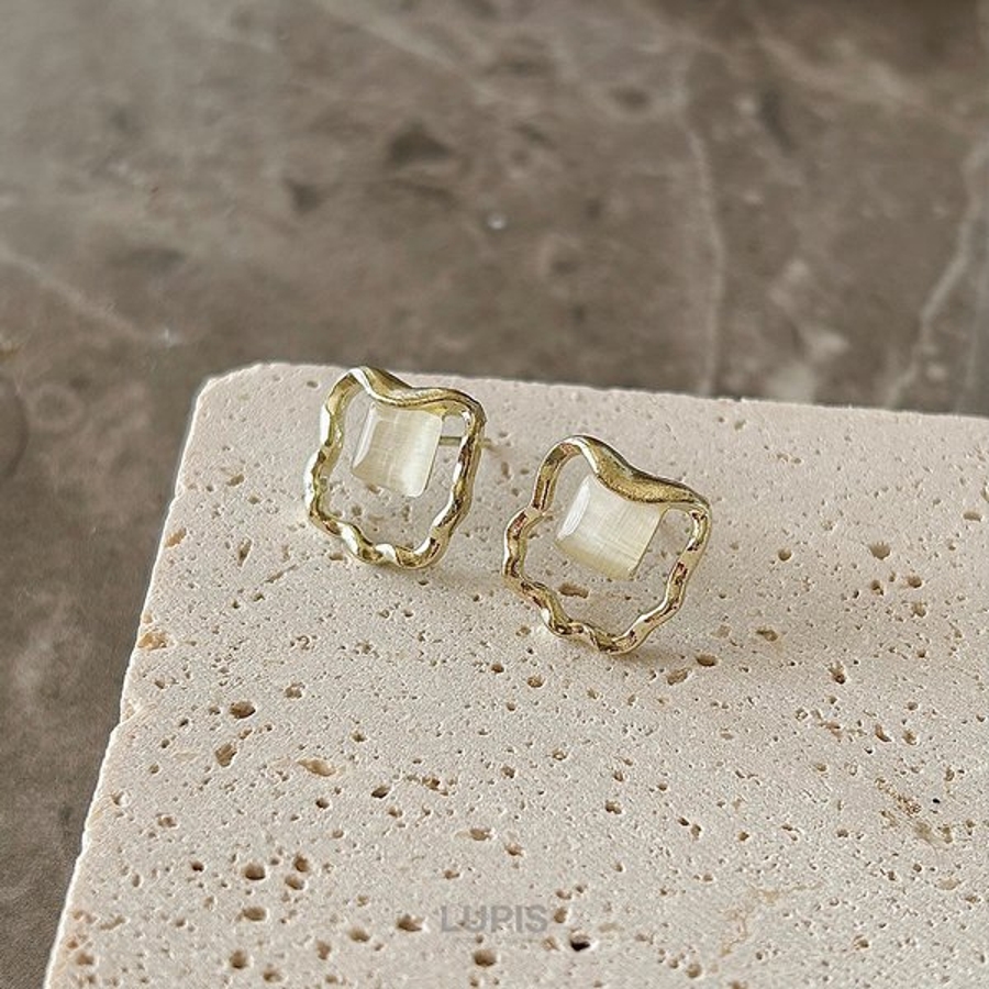 ニュアンス感のあるウェーブフレームが印象的なスクエアピアス。