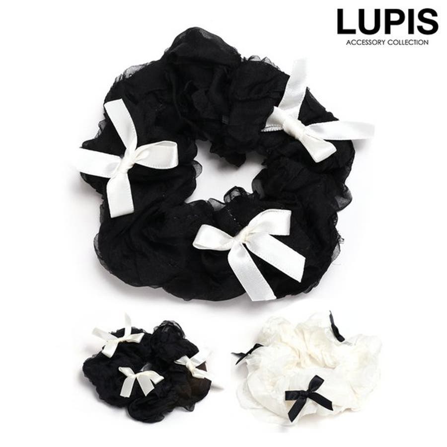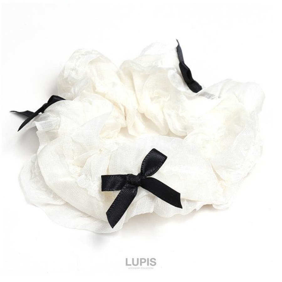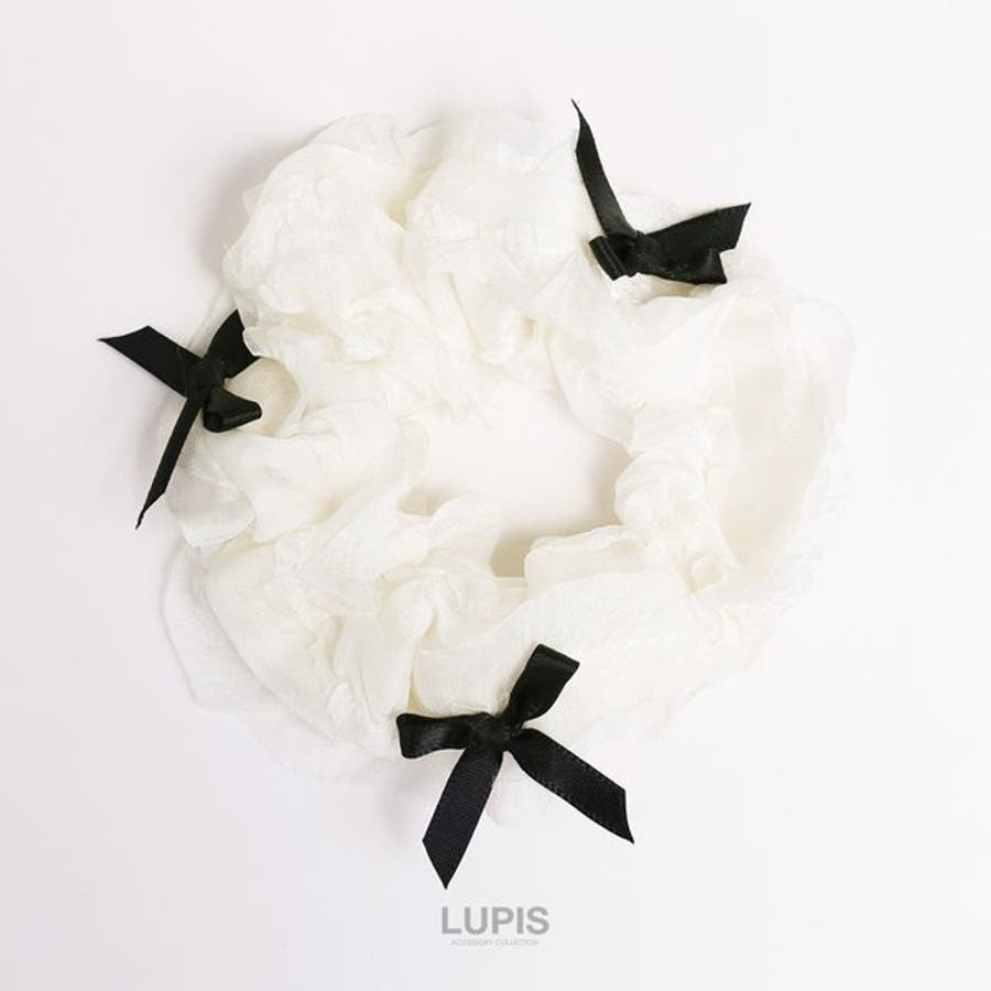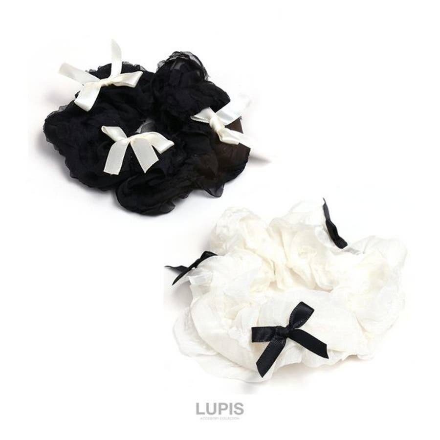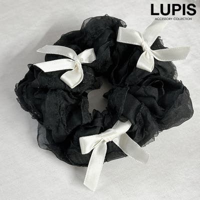 プチプラ ヘアアクセサリー シュシュ ヘアゴム リボン フリル ガーリー バレエコア フェミニン かわいい モノトーン ポニー お団子 韓国 韓国ファッション アイボリー ブラック 10代 20代 30代 レディース 女性 アクセサリー アクセ 安い 春 夏 春夏 秋 冬 秋冬 ルピス LUPIS