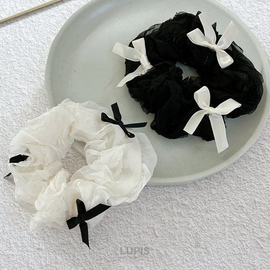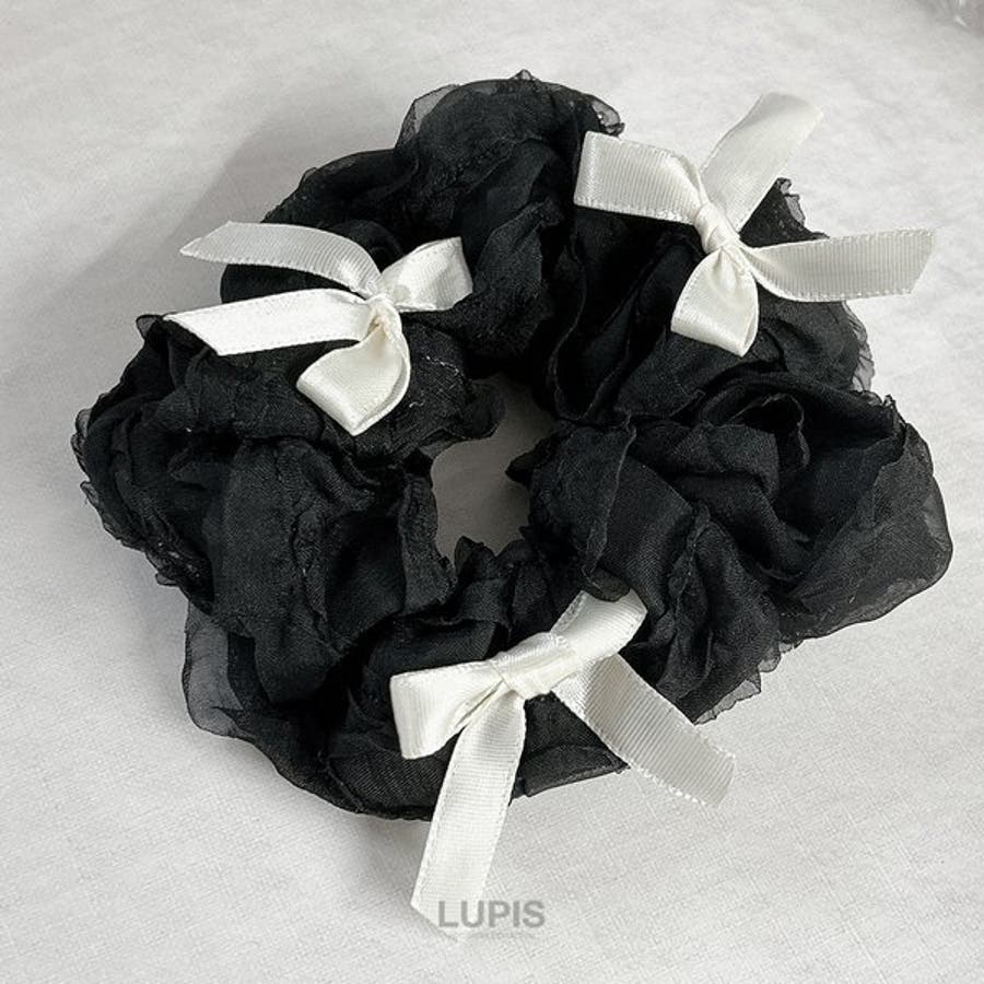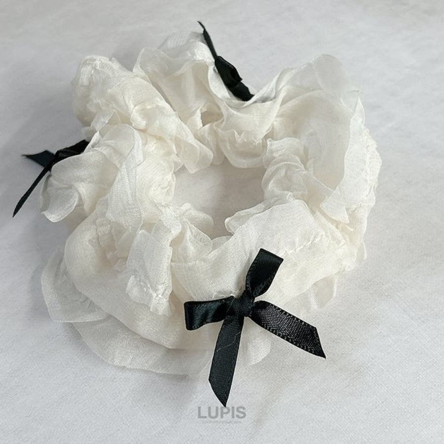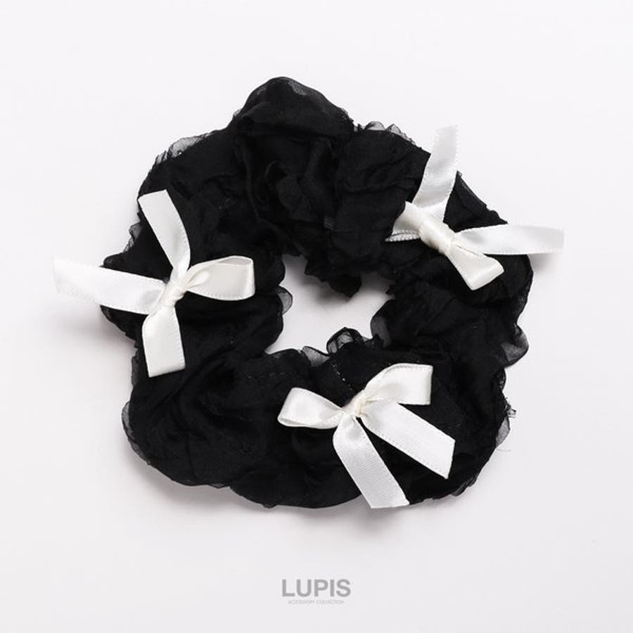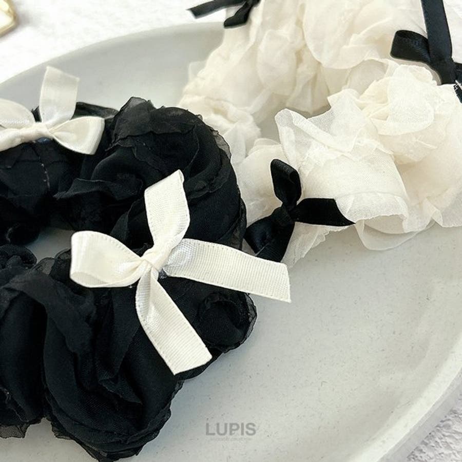 プチプラ ヘアアクセサリー シュシュ ヘアゴム リボン フリル ガーリー バレエコア フェミニン かわいい モノトーン ポニー お団子 韓国 韓国ファッション アイボリー ブラック 10代 20代 30代 レディース 女性 アクセサリー アクセ 安い 春 夏 春夏 秋 冬 秋冬 ルピス LUPIS