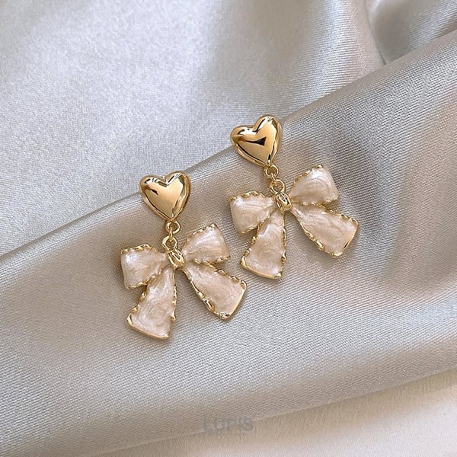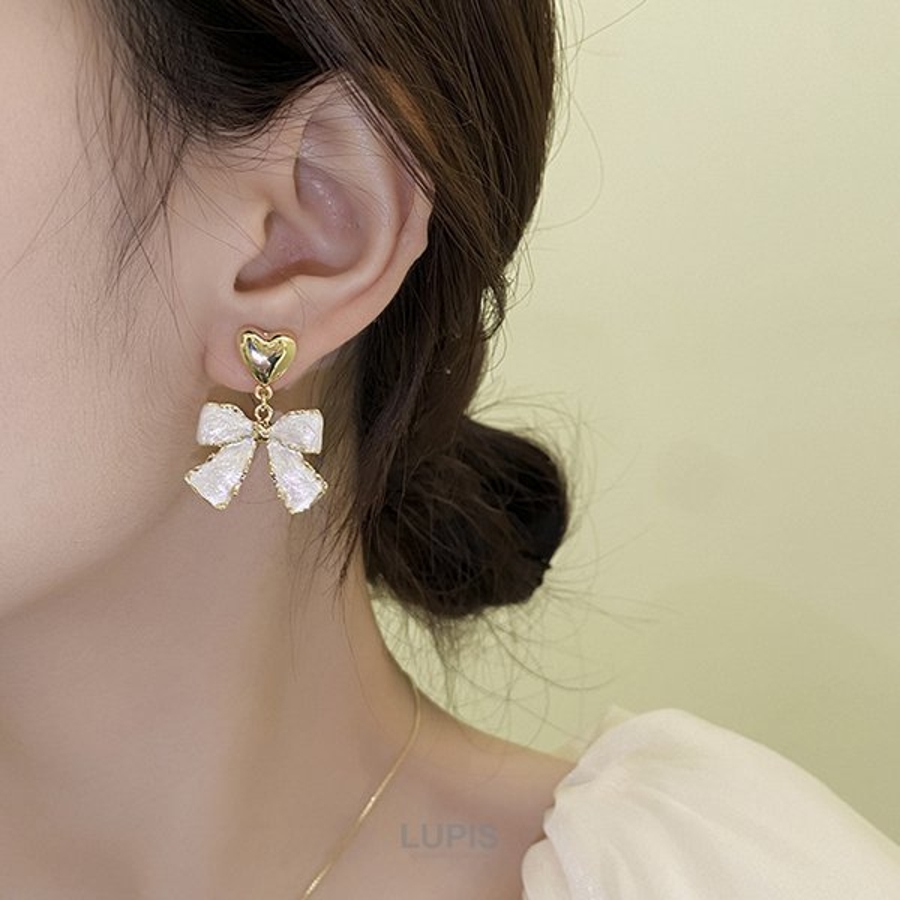 プチプラ ピアス ハート リボン マーブル フェミニン ガーリー 上品 エレガント 華やか かわいい バレエコア オケージョン 韓国 韓国ファッション ゴールド ホワイト 10代 20代 30代 レディース 女性 アクセサリー アクセ 安い 春 夏 春夏 秋 冬 秋冬 ルピス LUPIS