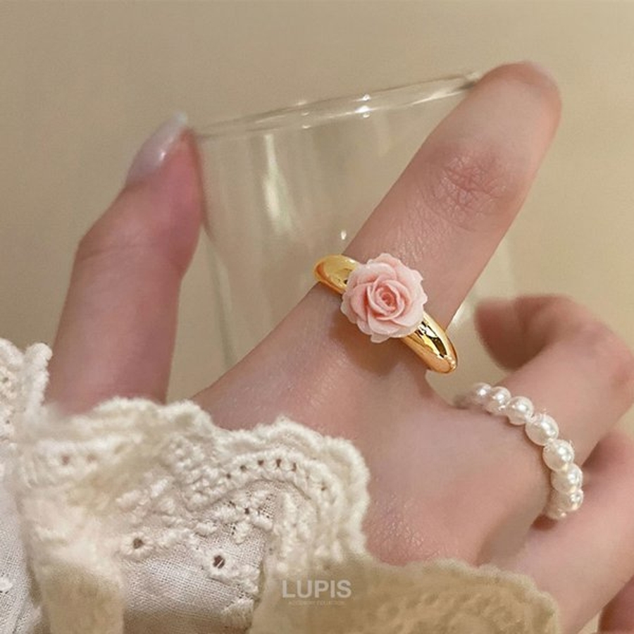 プチプラ 指輪 リング フラワー ローズ 花 薔薇 バラ ピンク ゴールド メタル 上品 華やか ワンポイント フェミニン かわいい 韓国 韓国ファッション 10代 20代 30代 レディース 女性 アクセサリー アクセ 安い 春 夏 春夏 秋 冬 秋冬 ルピス LUPIS