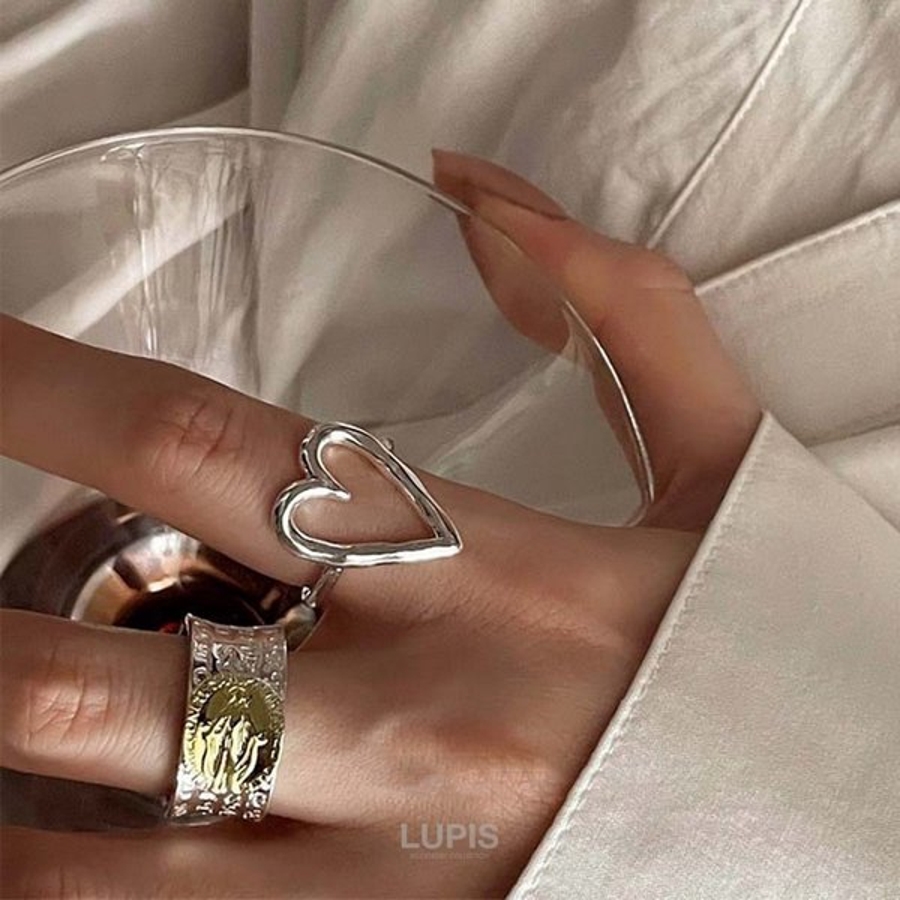 プチプラ 指輪 リング ハート ワイド コイン 刻印 シンプル メタル シルバー カジュアル スタイリッシュ おしゃれ こなれ感 モード クール 韓国 韓国ファッション 10代 20代 30代 40代 レディース 女性 アクセサリー アクセ 安い 春 夏 春夏 秋 冬 秋冬 ルピス LUPIS