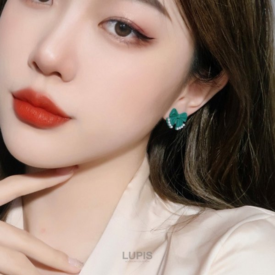 プチプラ ピアス シルバー925ポスト S925ポスト リボン パール ガーリー フェミニン マット マットカラー グリーン 大人かわいい 大人 かわいい 華やか デイリー オケージョン 韓国 韓国ファッション 10代 20代 30代 レディース 女性 アクセサリー アクセ 安い 春 夏 春夏 秋 冬 秋冬 ルピス LUPIS