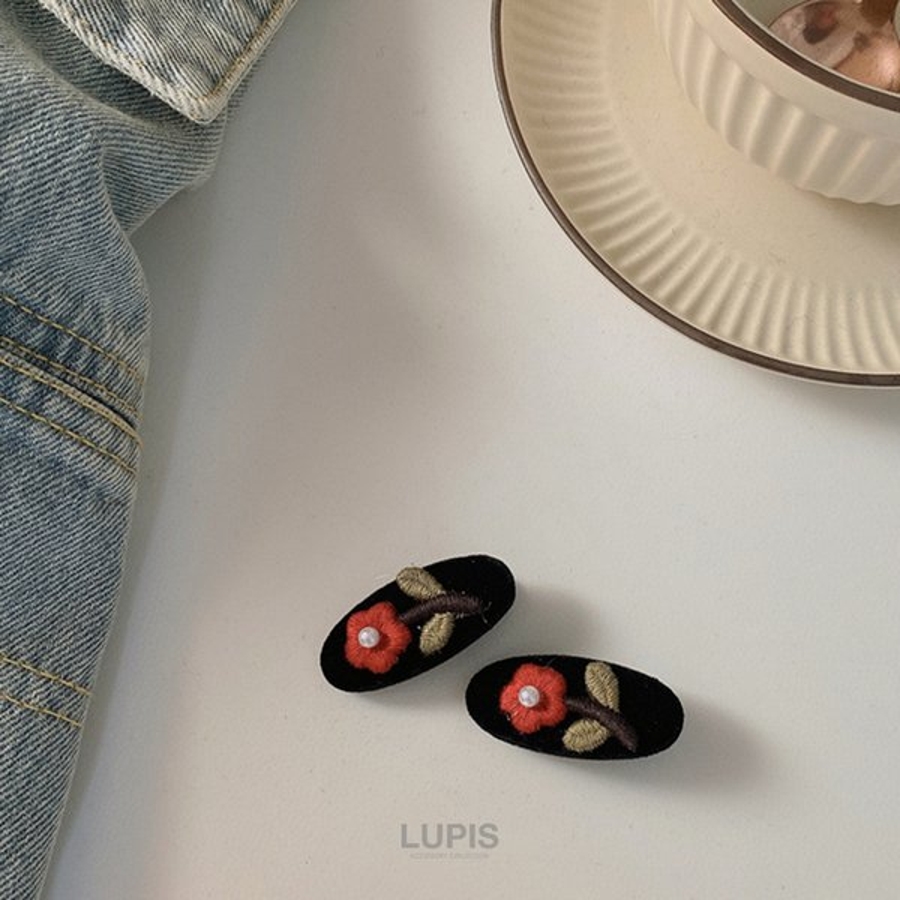 プチプラ ヘアアクセサリー ヘアクリップ ミニ フラワー 刺繍 ベロア レトロ レトロガーリー かわいい 華やか 上品 大人 1個売り 韓国 韓国ファッション ブラック 10代 20代 30代 40代 レディース 女性 アクセサリー アクセ 安い 春 夏 春夏 秋 冬 秋冬 ルピス LUPIS