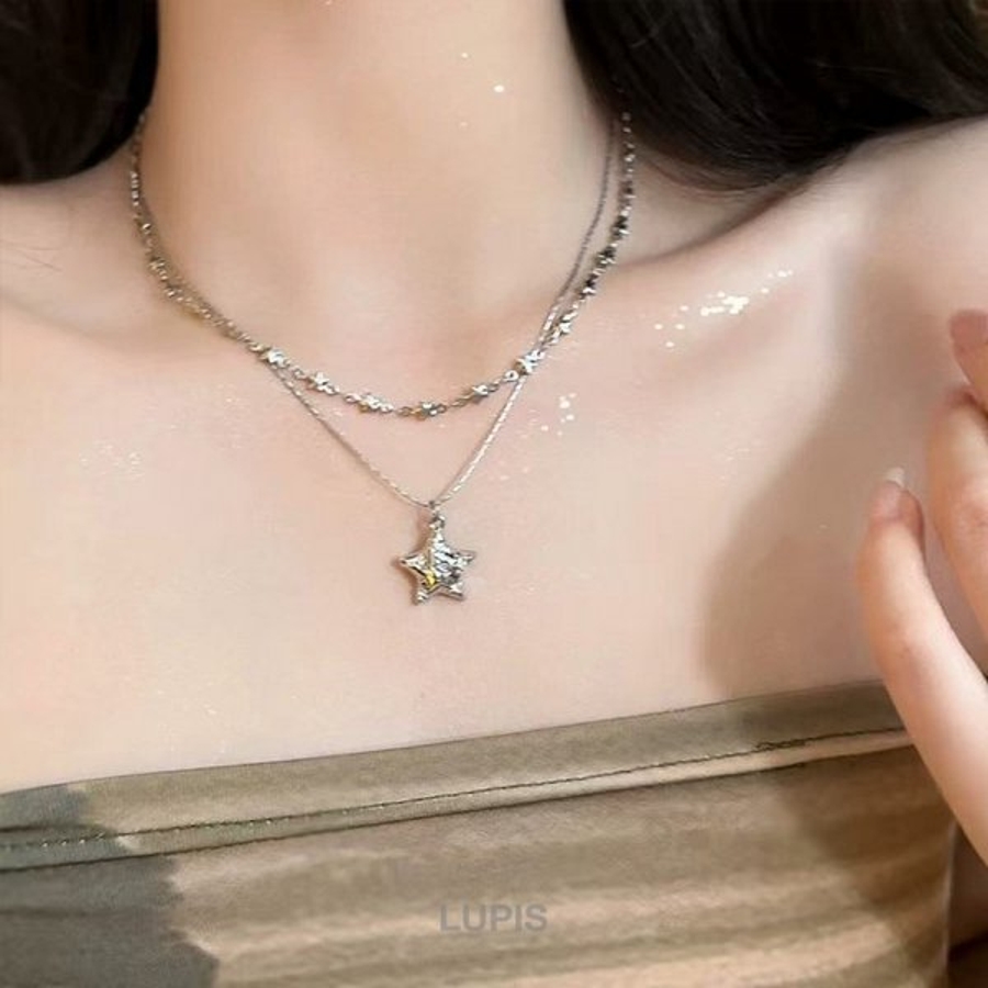 プチプラ ネックレス スター 星 キラキラ 華やか メタル シルバー ストーン カジュアル モード スタイリッシュ 華奢 韓国 韓国ファッション シルバー 10代 20代 30代 レディース 女性 アクセサリー アクセ 安い 春 夏 春夏 秋 冬 秋冬 ルピス LUPIS