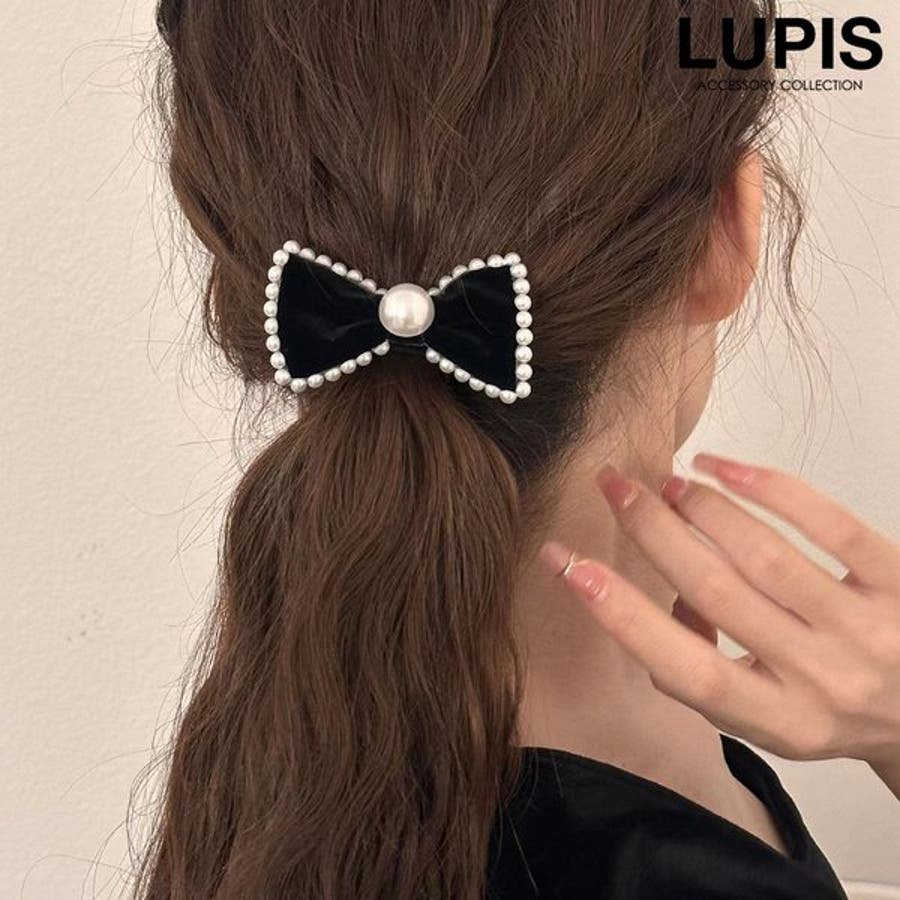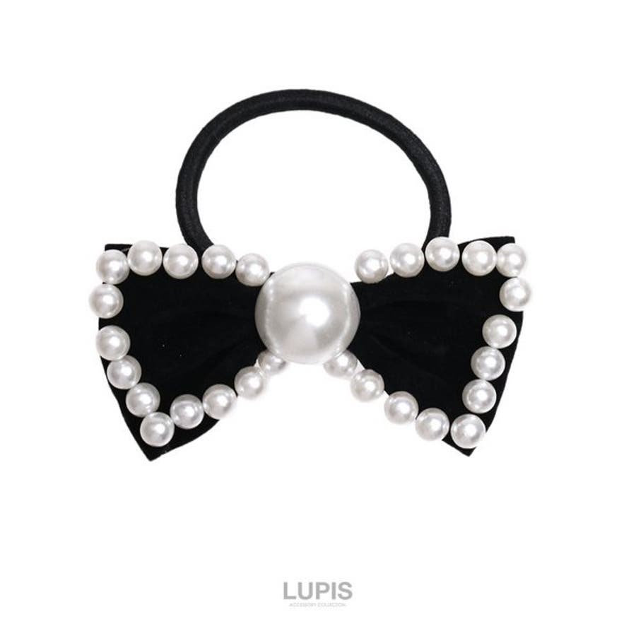 プチプラ ヘアゴム ヘアアクセサリー ブラック リボン パール かわいい ガーリー 華やか フレンチガーリー オケージョン まとめ髪 ポニー 韓国 韓国ファッション 10代 20代 30代 レディース 女性 アクセサリー アクセ 安い AW 秋 冬 秋冬 ルピス LUPIS