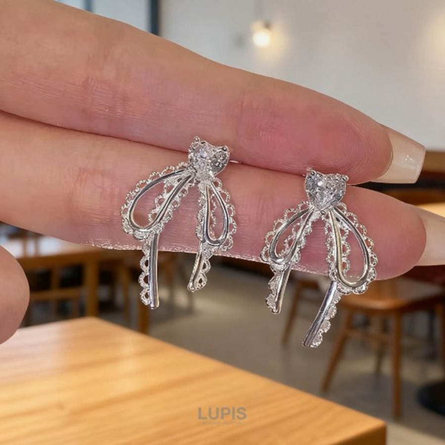 プチプラ ピアス リボン レース ハート ビジュー ストーン キラキラ 華やか ガーリー フェミニン かわいい 可愛い シルバー 韓国 韓国ファッション 10代 20代 30代 レディース 女性 アクセサリー アクセ 安い 春 夏 春夏 秋 冬 秋冬 ルピス LUPIS