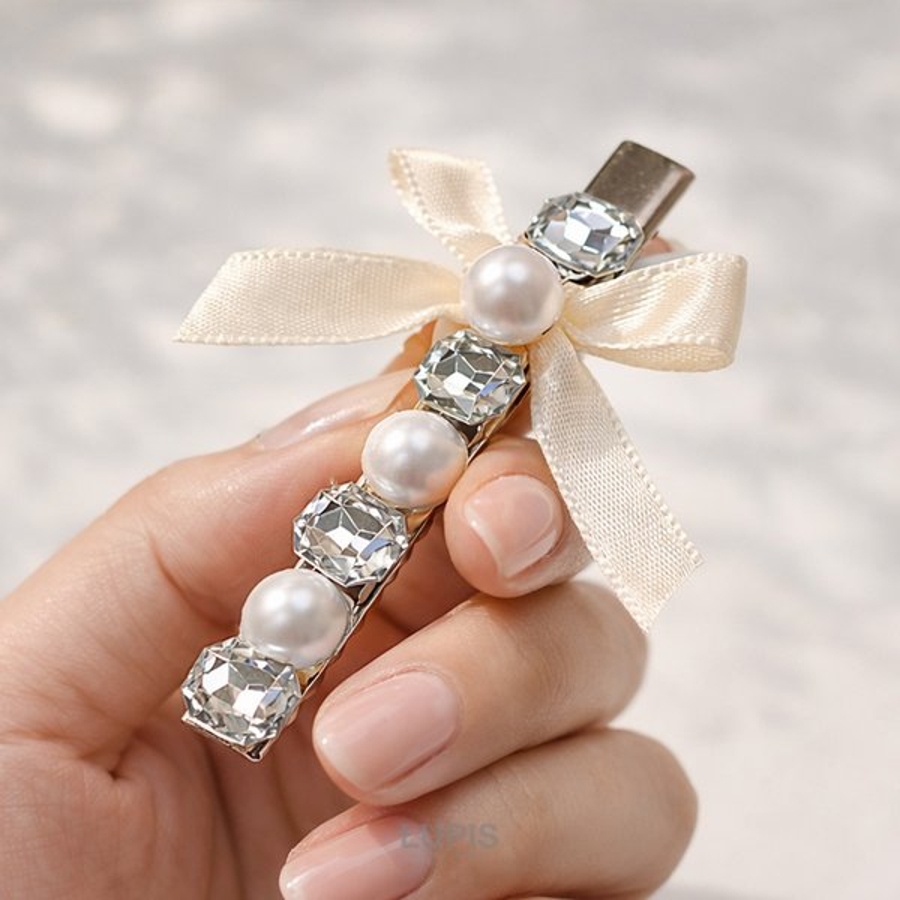 プチプラ ヘアクリップ ヘアアクセサリー リボン ホワイト ビジュー ストーン パール 可愛い かわいい ガーリー 華やか 上品 ゴージャス オケージョン パーティ 韓国 韓国ファッション 10代 20代 30代 レディース 女性 アクセサリー アクセ 安い 春 夏 春夏 秋 冬 秋冬 ルピス LUPIS