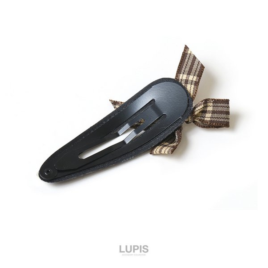 クラシカルなチェック柄にガーリーなリボンを合わせたぱっちんヘアピン。